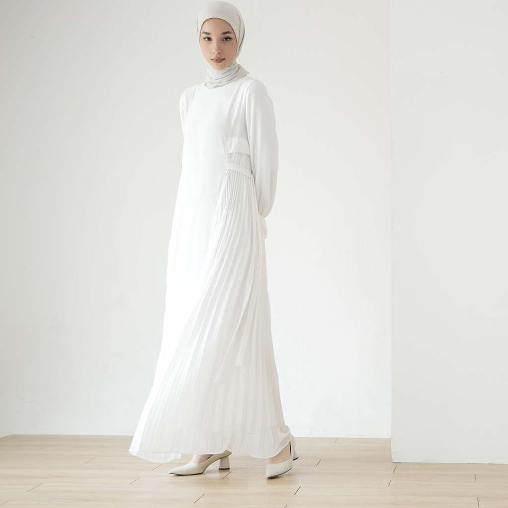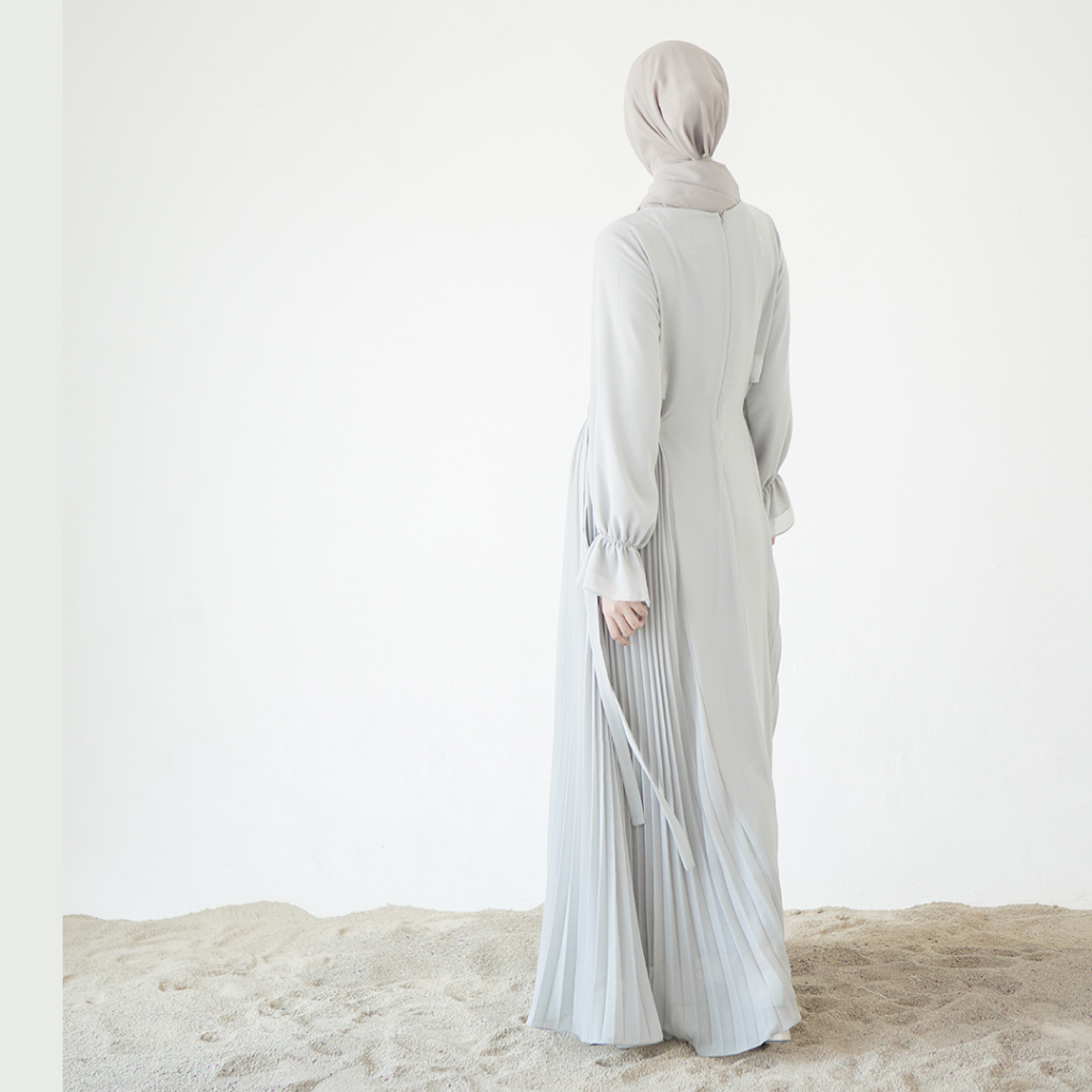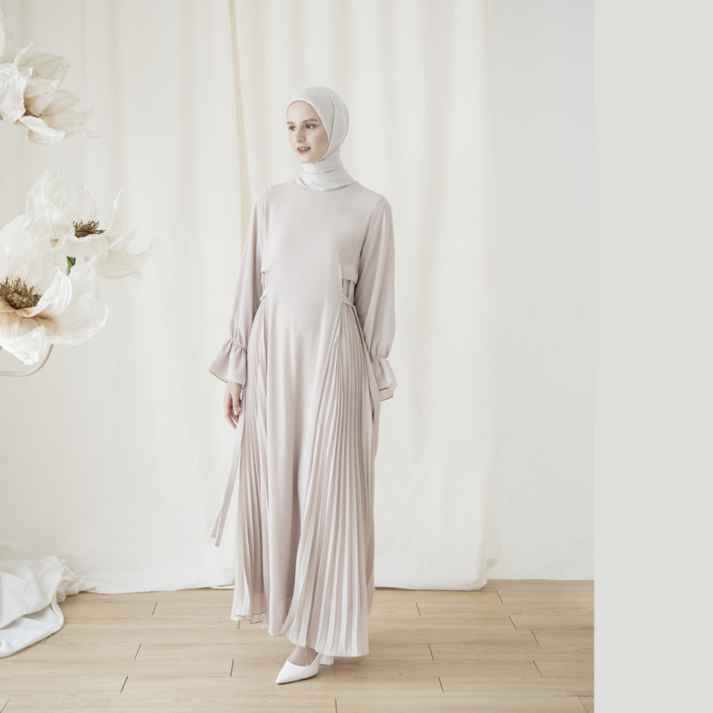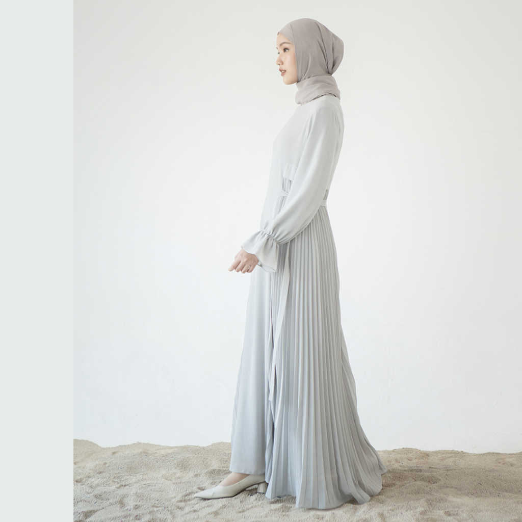 Taima by Aska Label - Gamis wanita details pleats maxi dress panjang wanita warna putih, grey, hitam