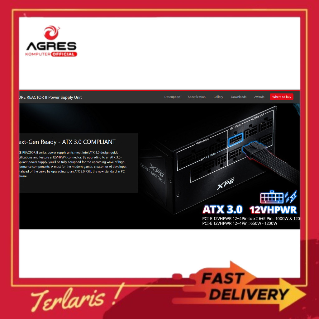 ADATA XPG PSU POWER SUPPLY CORE REACTOR II 750W (80+ GOLD) FULLY MODULAR ATX 3.1 PCIE 5.0 BLACK