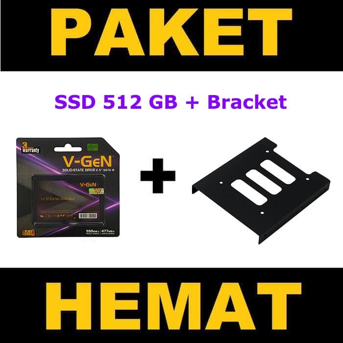PAKET SSD 512GB V-GeN PLATINUM SATA 3 + Bracket 3.5 Inch For PC