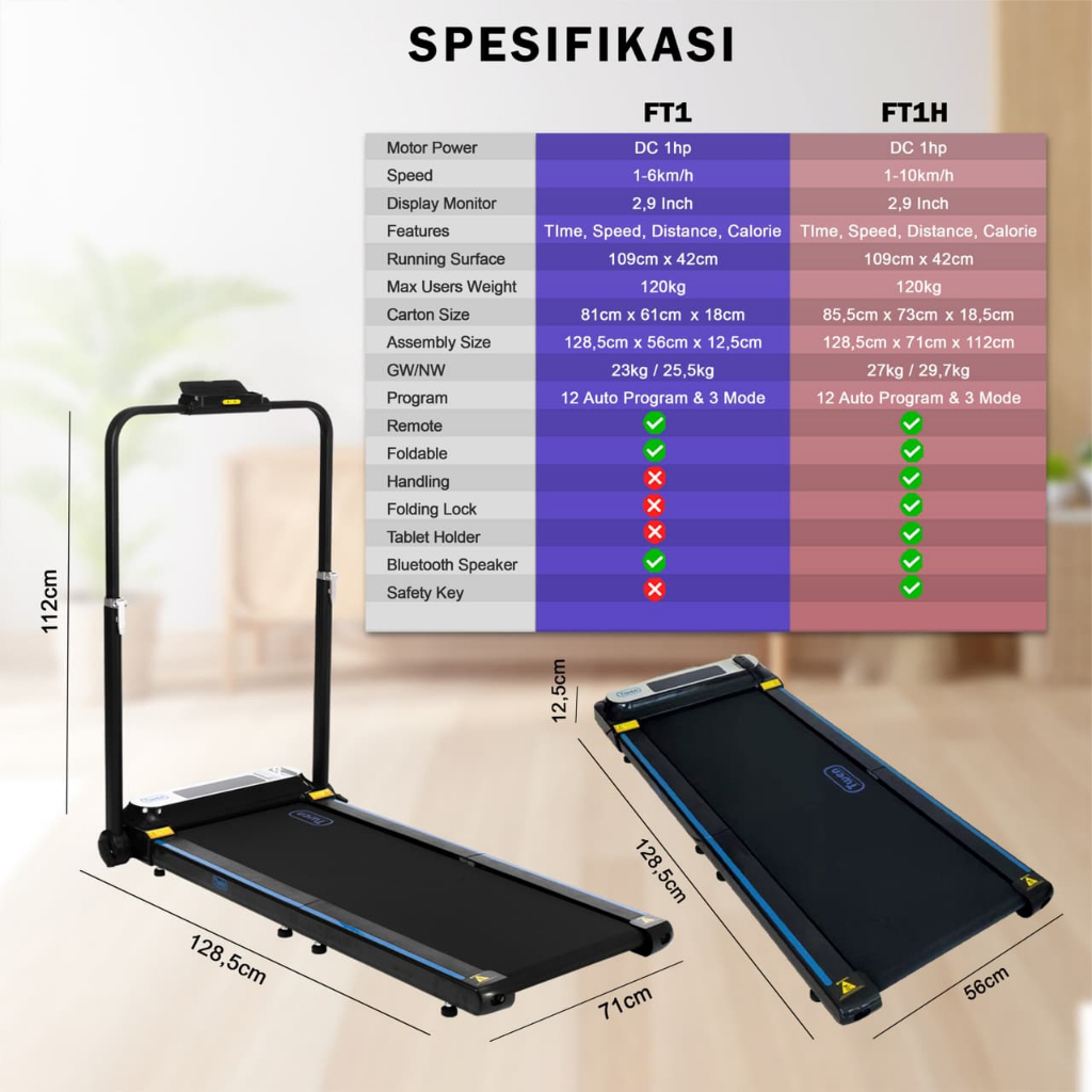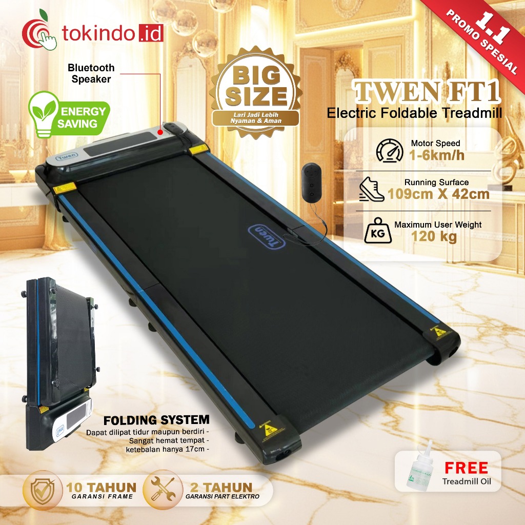 Twen Ft1 Ft1H Treadmill Elektrik Treadmill Portable Walking Pad Running Pad Alat Olahraga