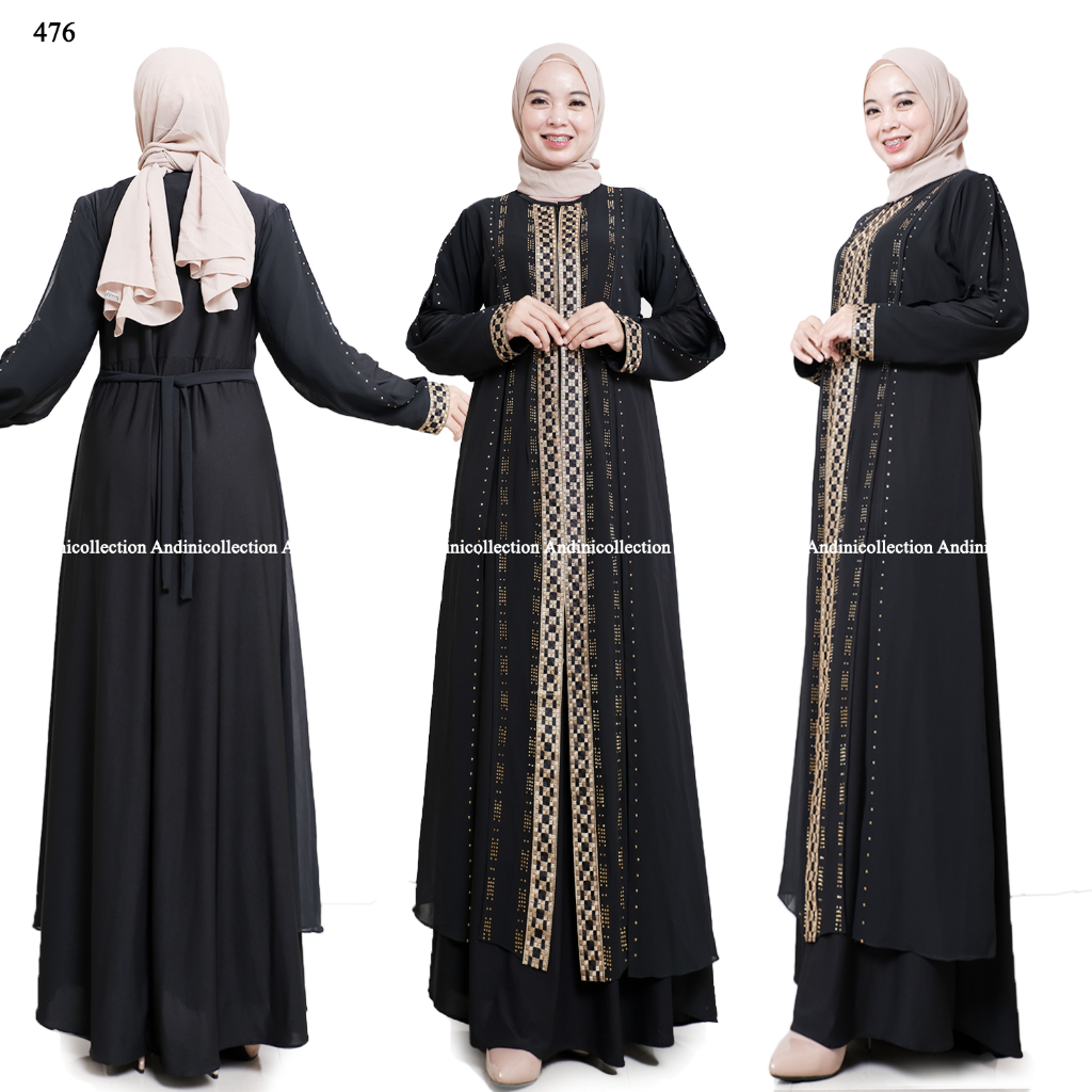 Andinicollection Abaya Turkey 476 Amarta Hitam Putih Dewasa Muslim Bordir dan Payet Mewah
