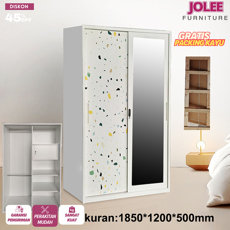 HI.quality-- Lemari Pakaian Besi Lemari Pakaian 90cm 2 pintu slidding 1 Hanger Cermin Minimalis