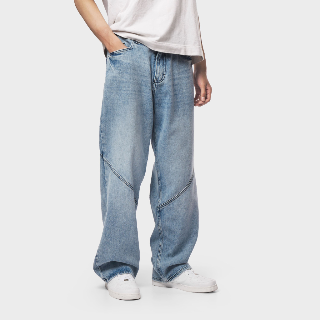 Jacknim - Osaka Celana Jeans Pria Loose Fit Baggy Denim Light Blue Premium Look Streetwear Unisex