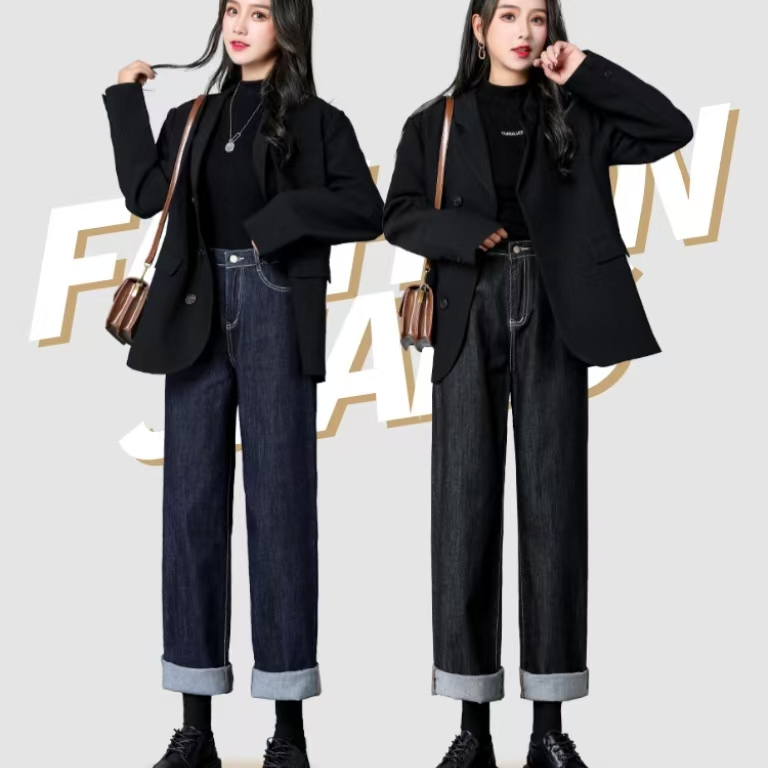 Jeans Wanita Pinggang Tinggi Tipis Jeans Lurus