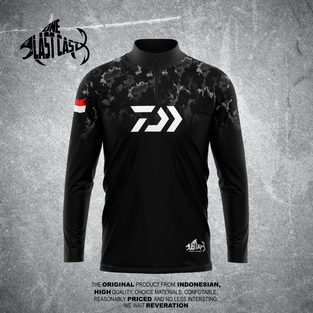 Onelastcast Baju Mancing / Jersey Mancing Model Kerah Berdiri Zipper / Jersey Daiwa Black Fullprint