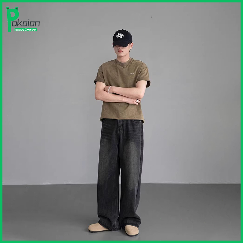 Celana Jeans Pria Celana Panjang Pria Baggy Jeans Pria Celana Kulot Pria Celana Korean Style Pria Celana Gombrong Pria C