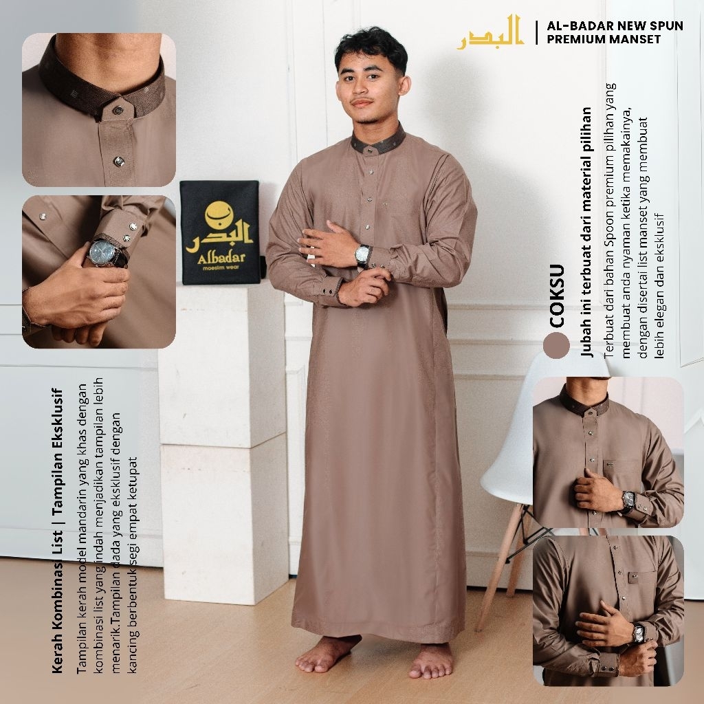 Jubah Albadar Premium Manset Katun Spun Model Terbaru Kerah New Gamis Pria Dewasa Remaja Muslim Hitam Putih Navy