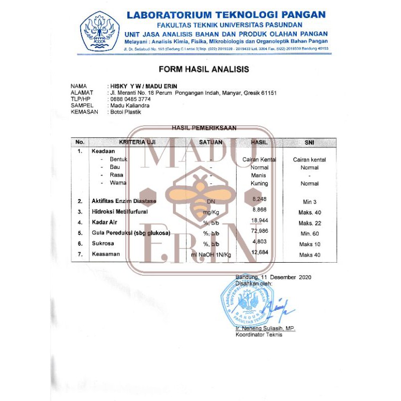 Madu Murni Asli 1kg Nektar Kaliandra, Ter Uji Lab. Sesuai standar SNI | Madu Erin