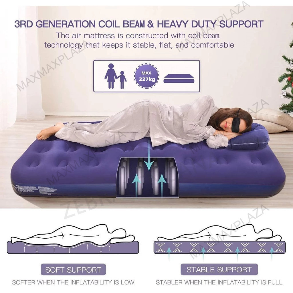 Kasur Angin Double [20315225Cm] / Kasur Tidur Angin+ Bantal + Pompa Paket Kasur Tiup Air Bed Double