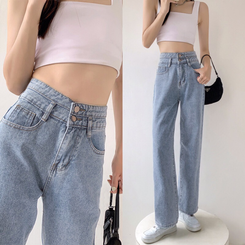 [Beevalue] Celana Panjang Wanita Kulot Jeans Highwaist Dua Kancing Bahan Premium | Loose Jeans Wanita Highwaist | Boyfri
