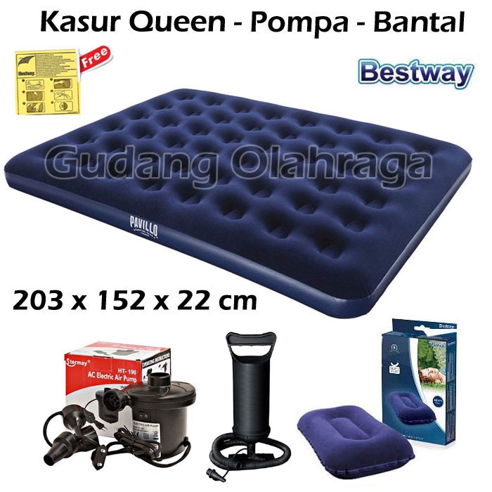 Bestway 67003 Paket Kasur Angin Queen Size [203Cm X 152Cm] / Paket Kasur Tiup Air Bed Ukuran Queen