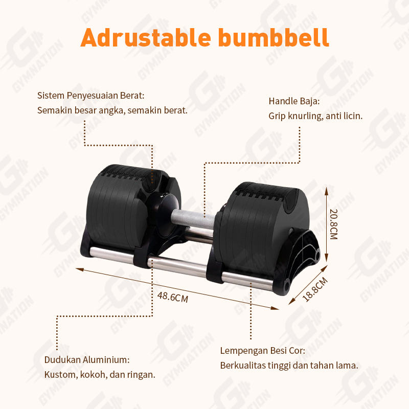 Gratis Base Dumbbell Adjustable - Bisa Diatur 1 Detik, Pengunci Aman, Beban Ringan Sampai Berat, Home Gym, Alat Fitness