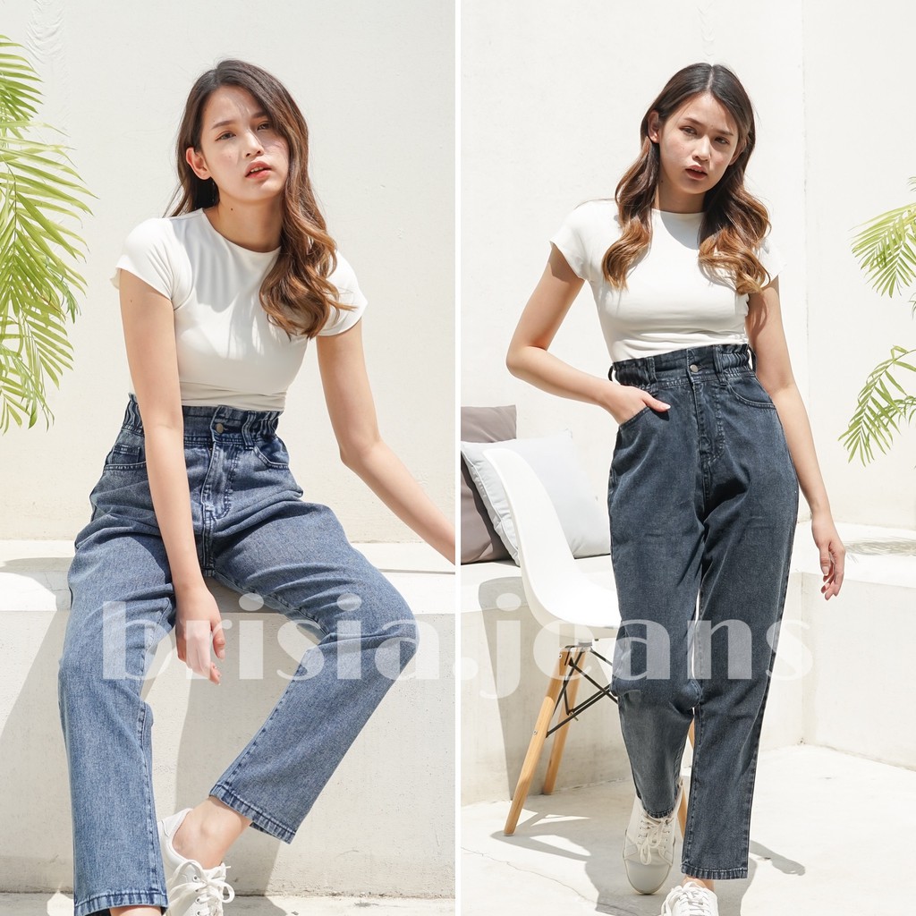 BRISIA JEANS - JI-EUN Boyfriend Jeans Size 27-38 - Snow Blue - Snow Black / Highwaist Jeans