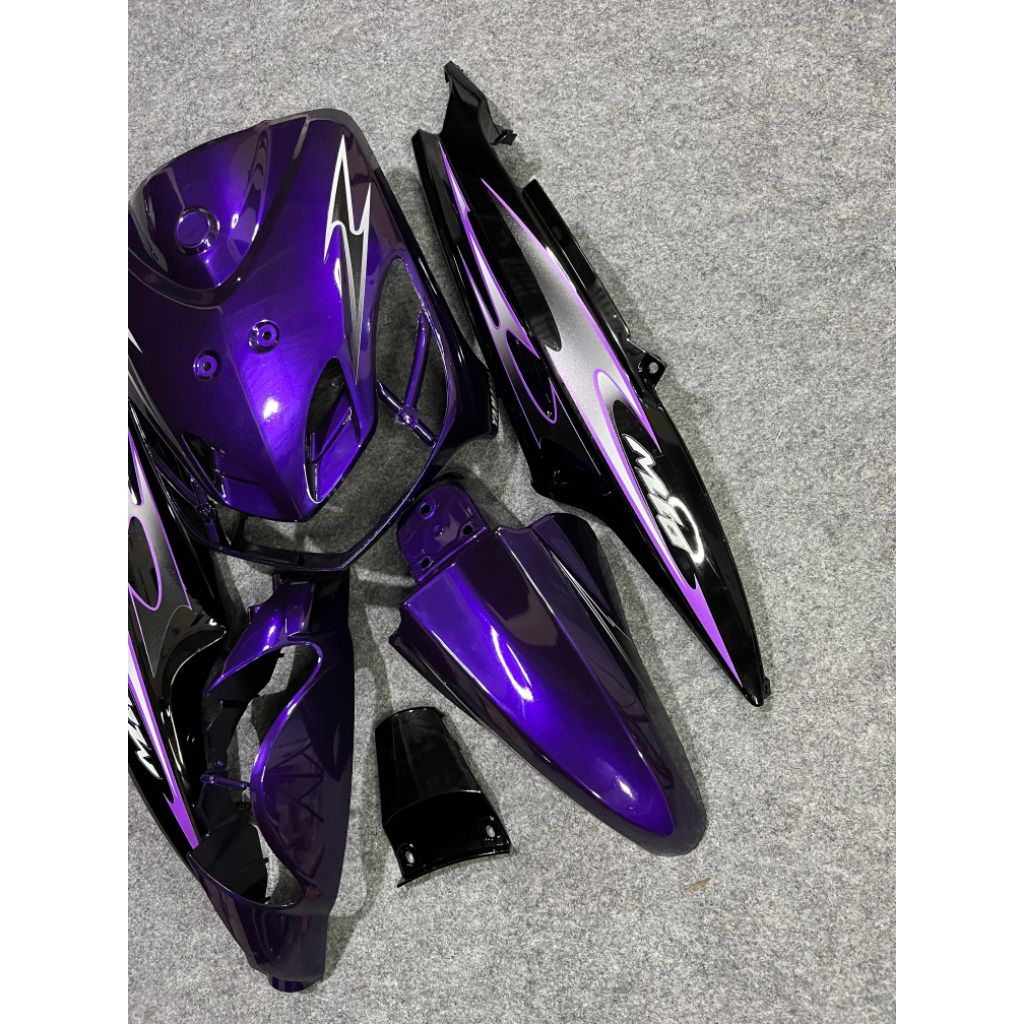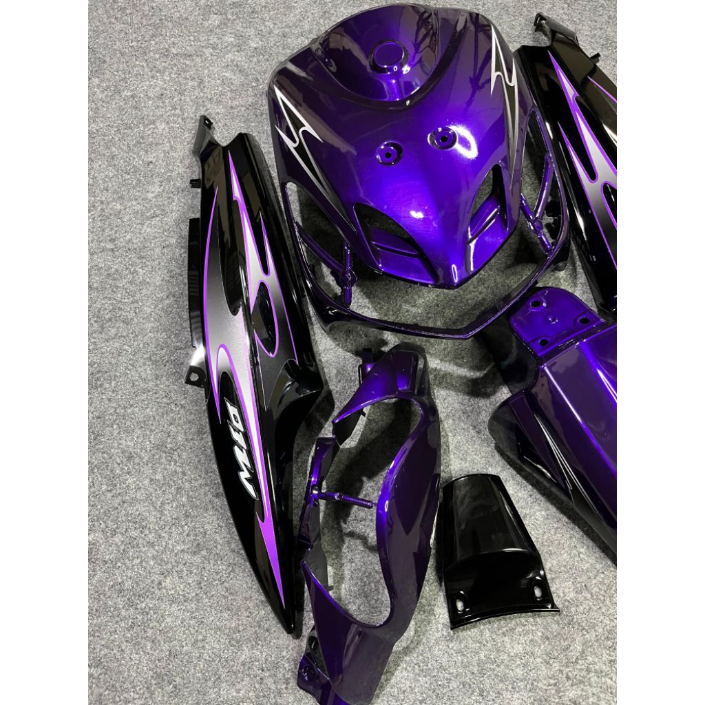 Cover full body halus Yamaha mio smie warna ungu candy body hitam vietnam plus striping transparan varky