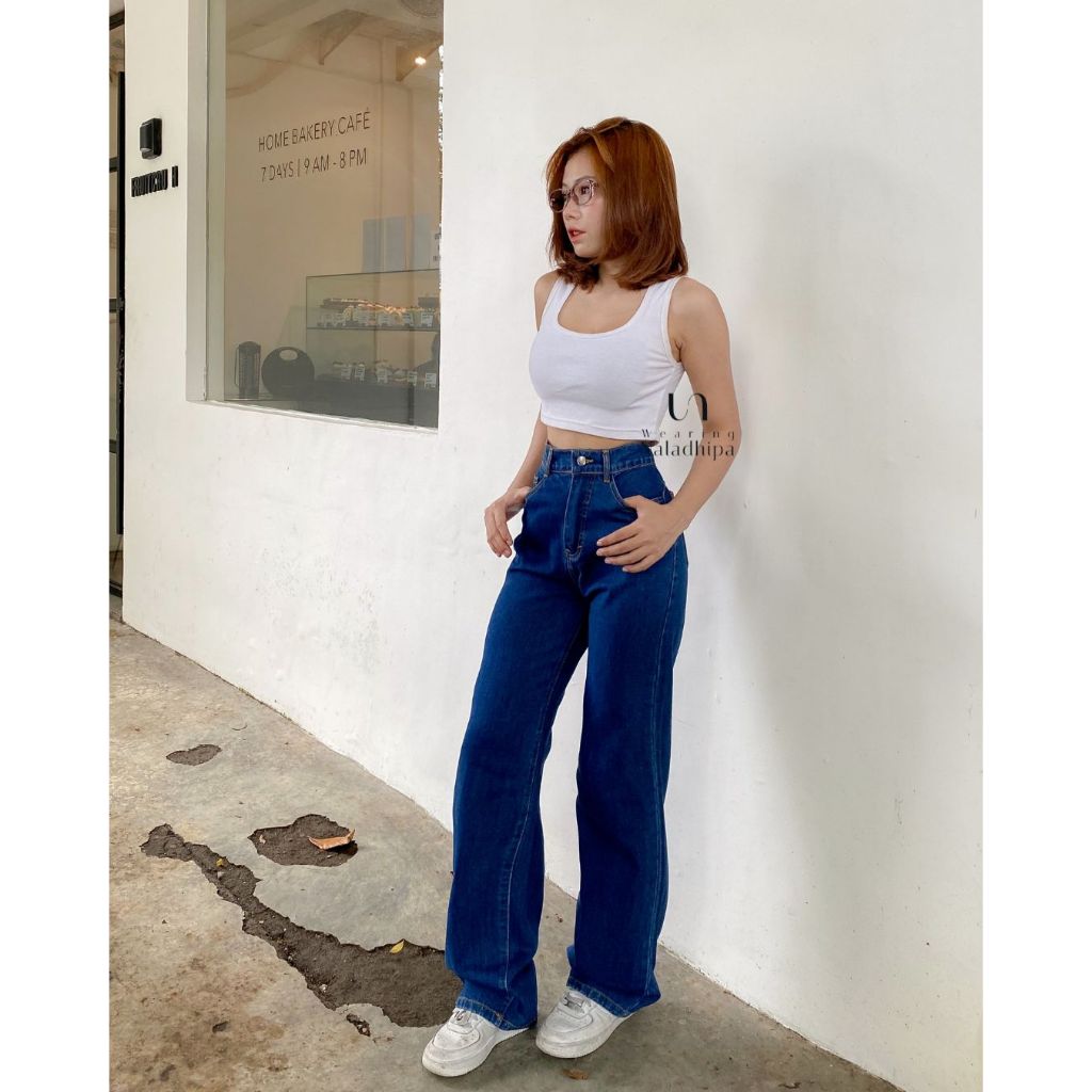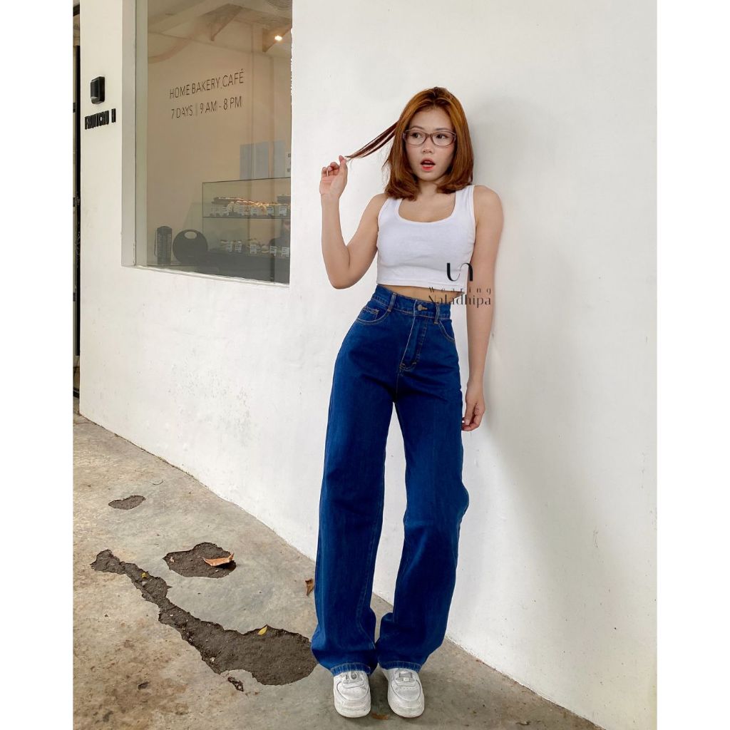 Naladhipa - Nara Pants Biru Tua | Highwaist Stright Jeans | Denim Loose jeans | Celana Wanita | Celana Jeans Wanita | Hi