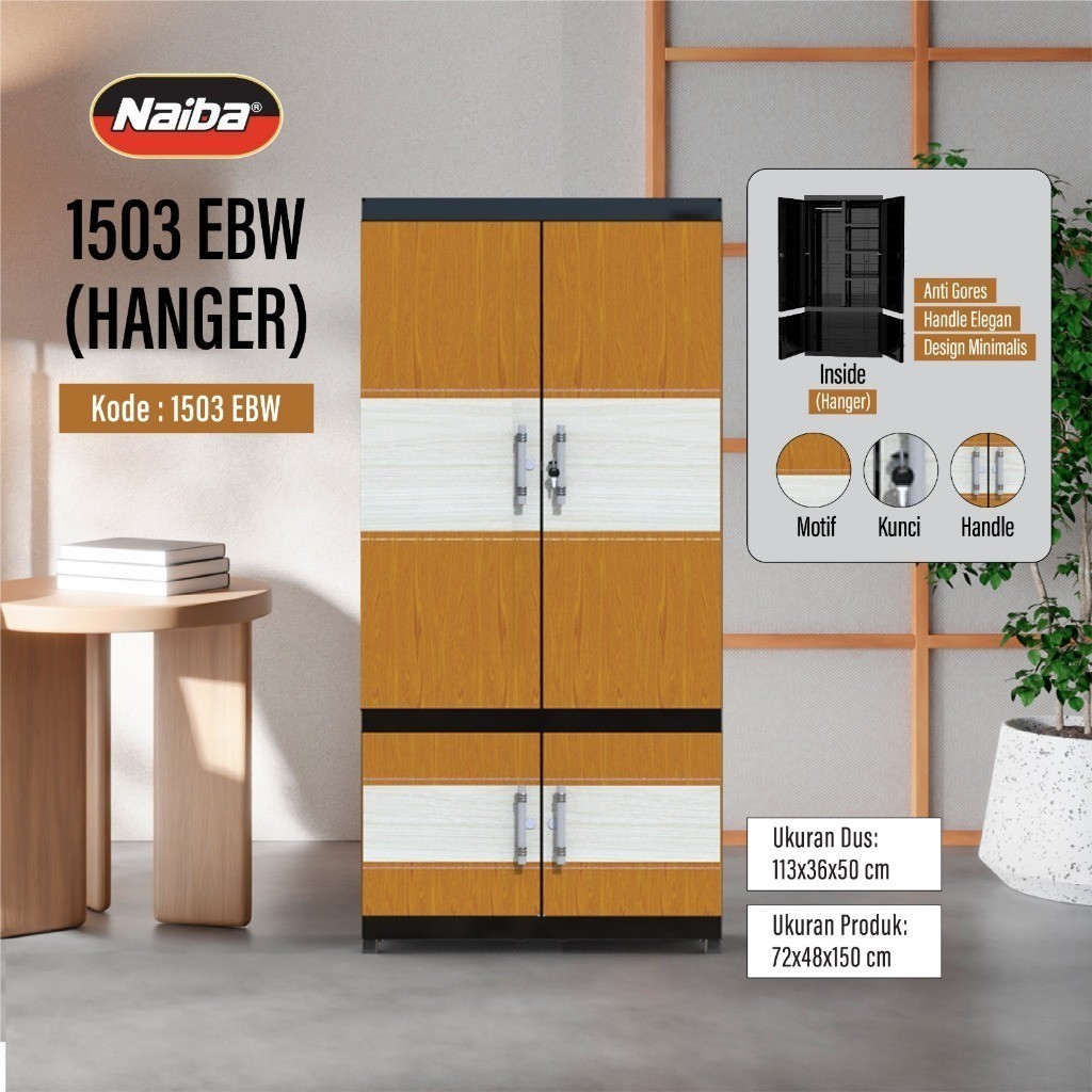 Naiba 1503 / 1523 / 1524 / 1504 - Lemari Gantung Naiba Kaca / / Lemari Hanger / Lemari Pakaian Gantung Batik Minimalis / Lemari Gantung FIT NAIBA EBONY