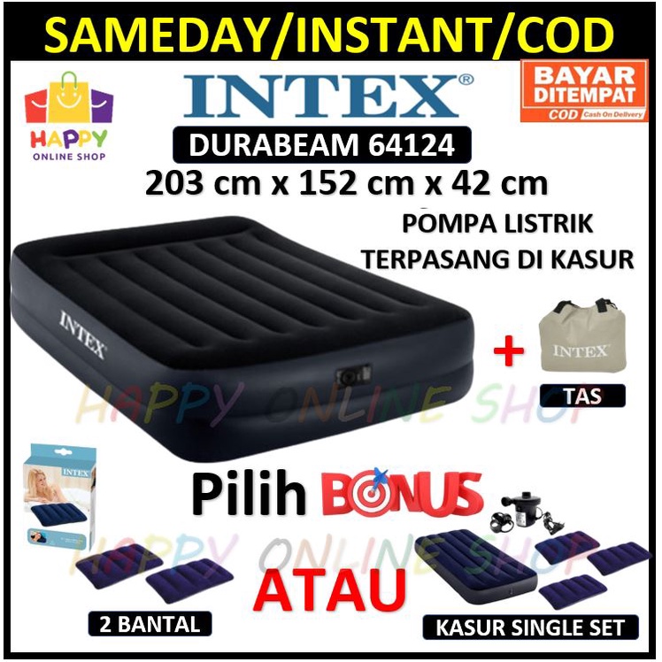 Intex Kasur Angin Durabeam 64124 / 64136 Pompa Listrik Ukuran 203X152X42Cm