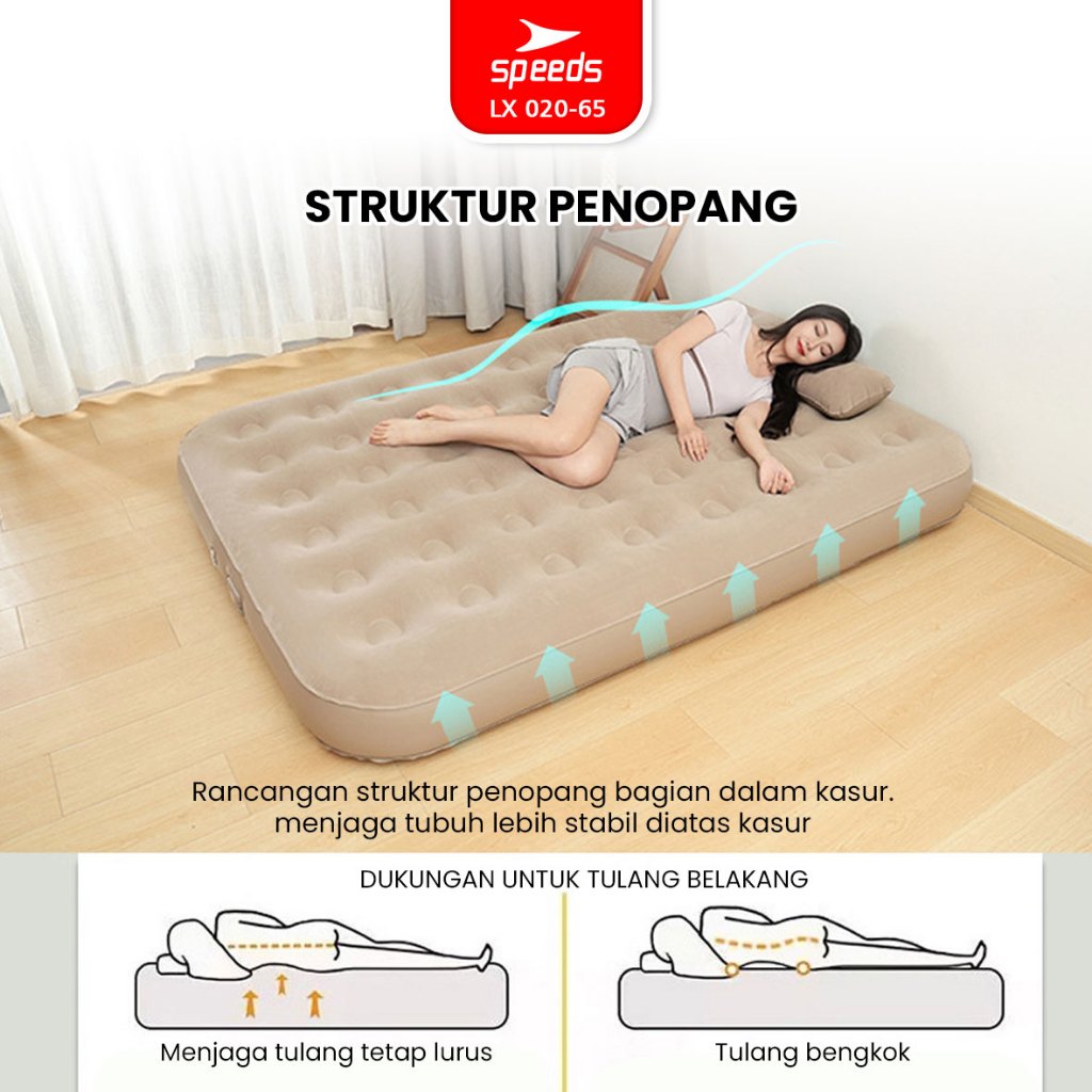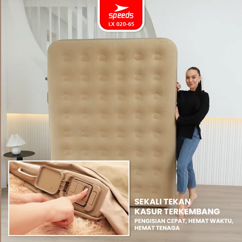 Speeds Kasur Angin Tiup 200X154X43Cm Multifungsi Matras Kasur Pompa Outdoor Inflatable Bed 020-65