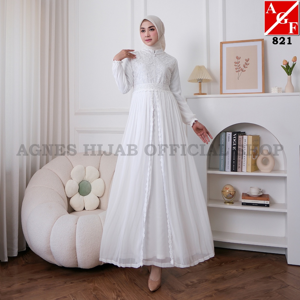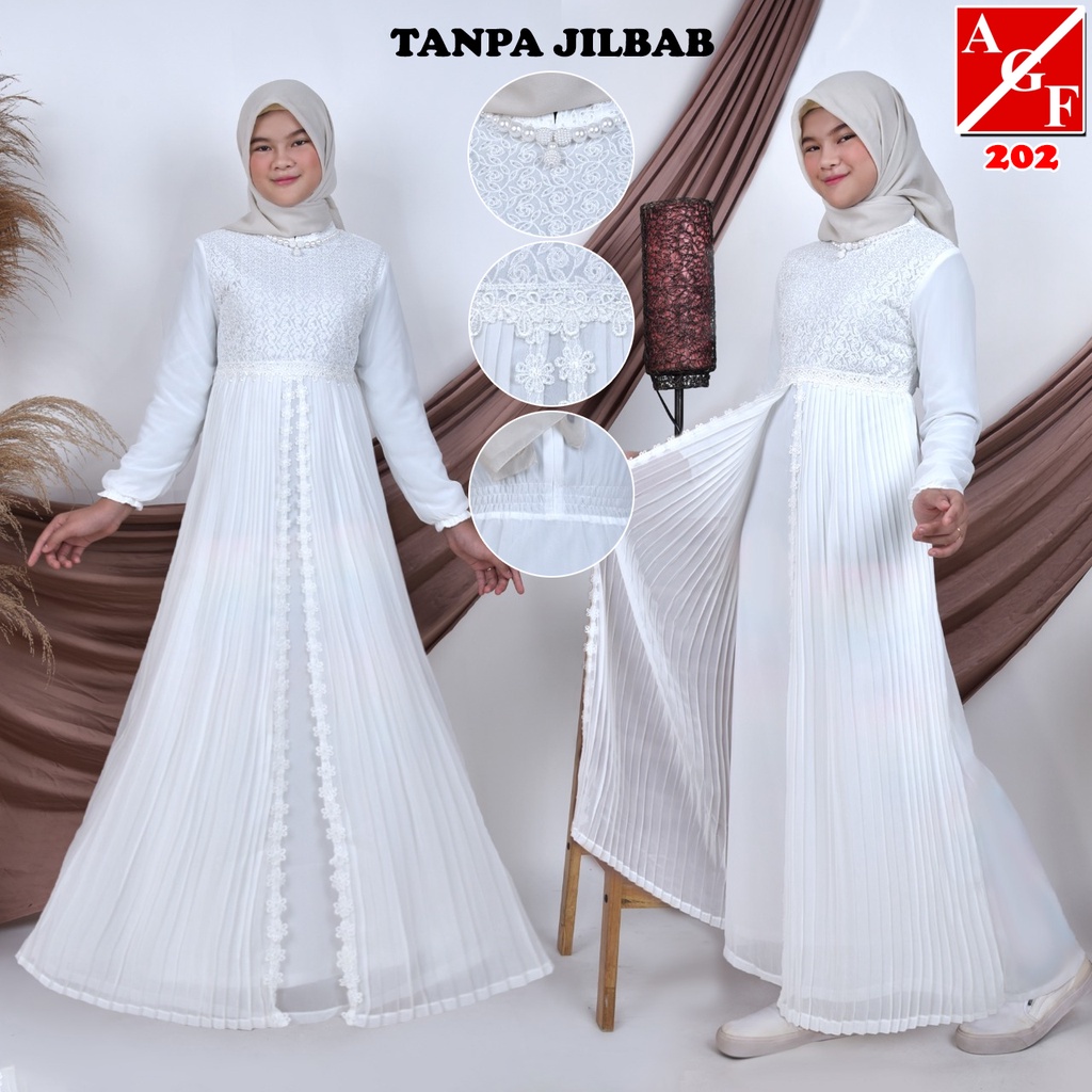 Agnes Hijab - Khairany Dress Gamis Putih Lebaran 2026 Terbaru Plisket Baju Muslim Dewasa Elegan Gaun Pesta Kondangan Haji Umroh 821