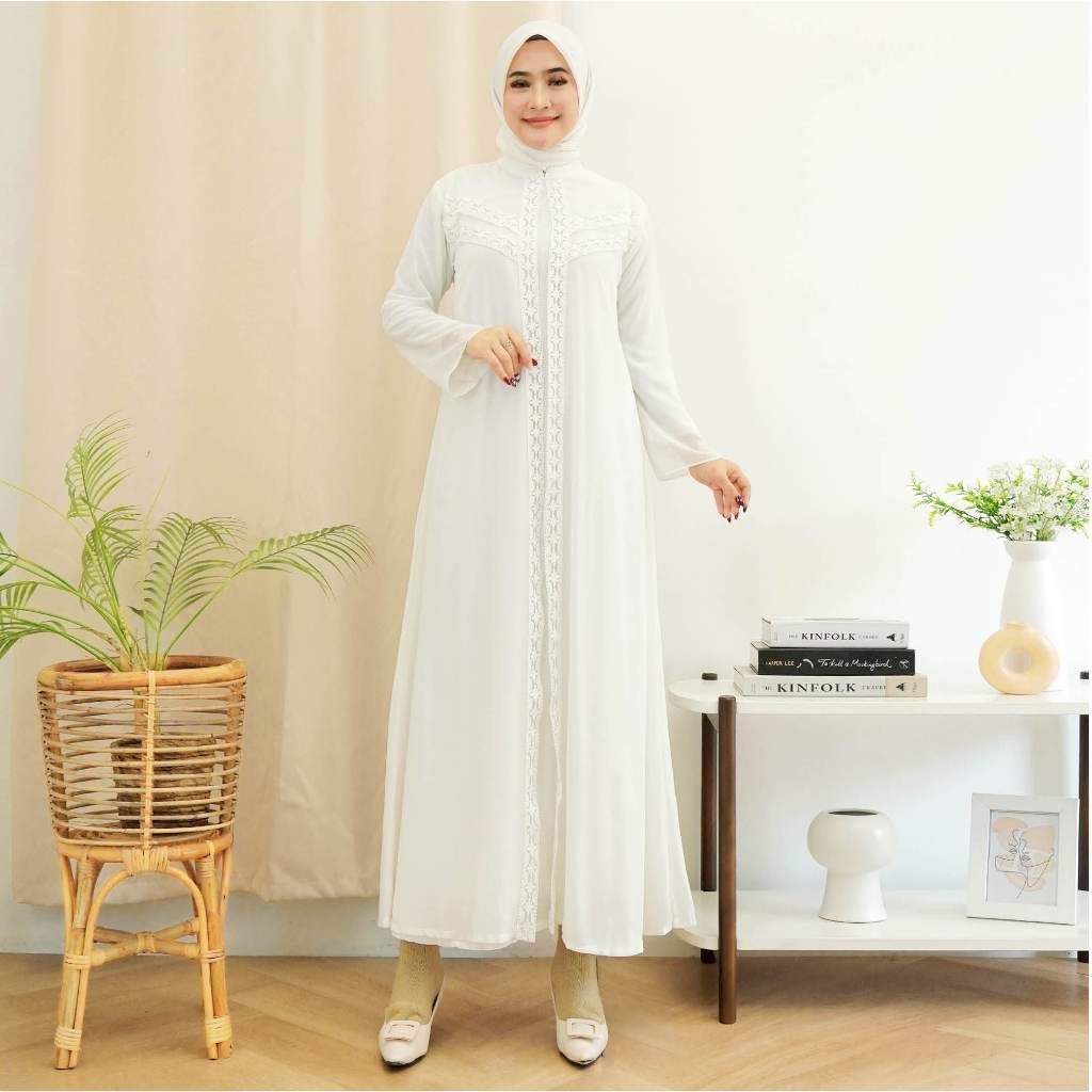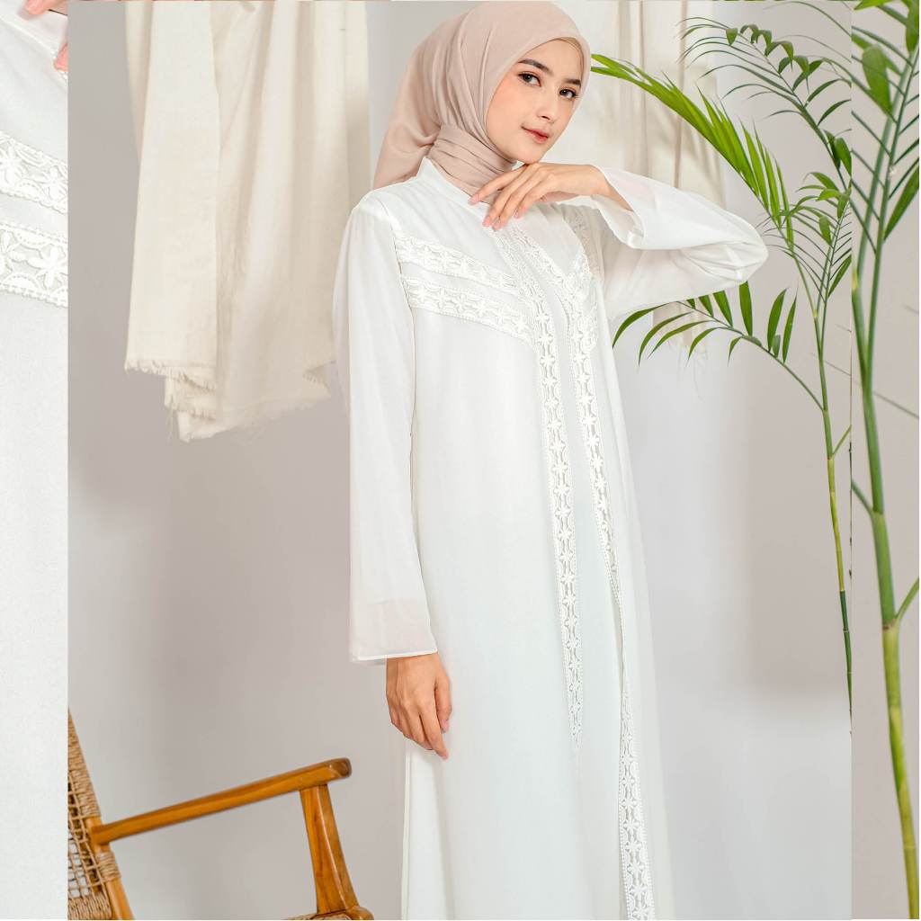 Gamis TALITHA Abaya Brukat Putih 502 - Gamis Muslim Wanita - Lebaran / Umroh Putih Premium by ARIVA