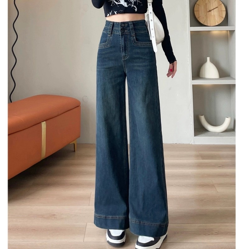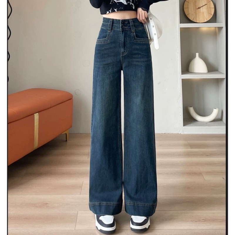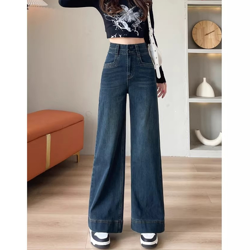 meissi.id Celana Jeans Wanita High Waist Loose Straight Jeans Korea Style Vintage Denim Tebal Nyaman