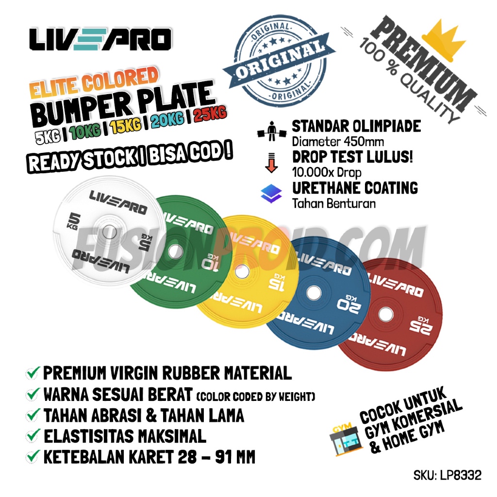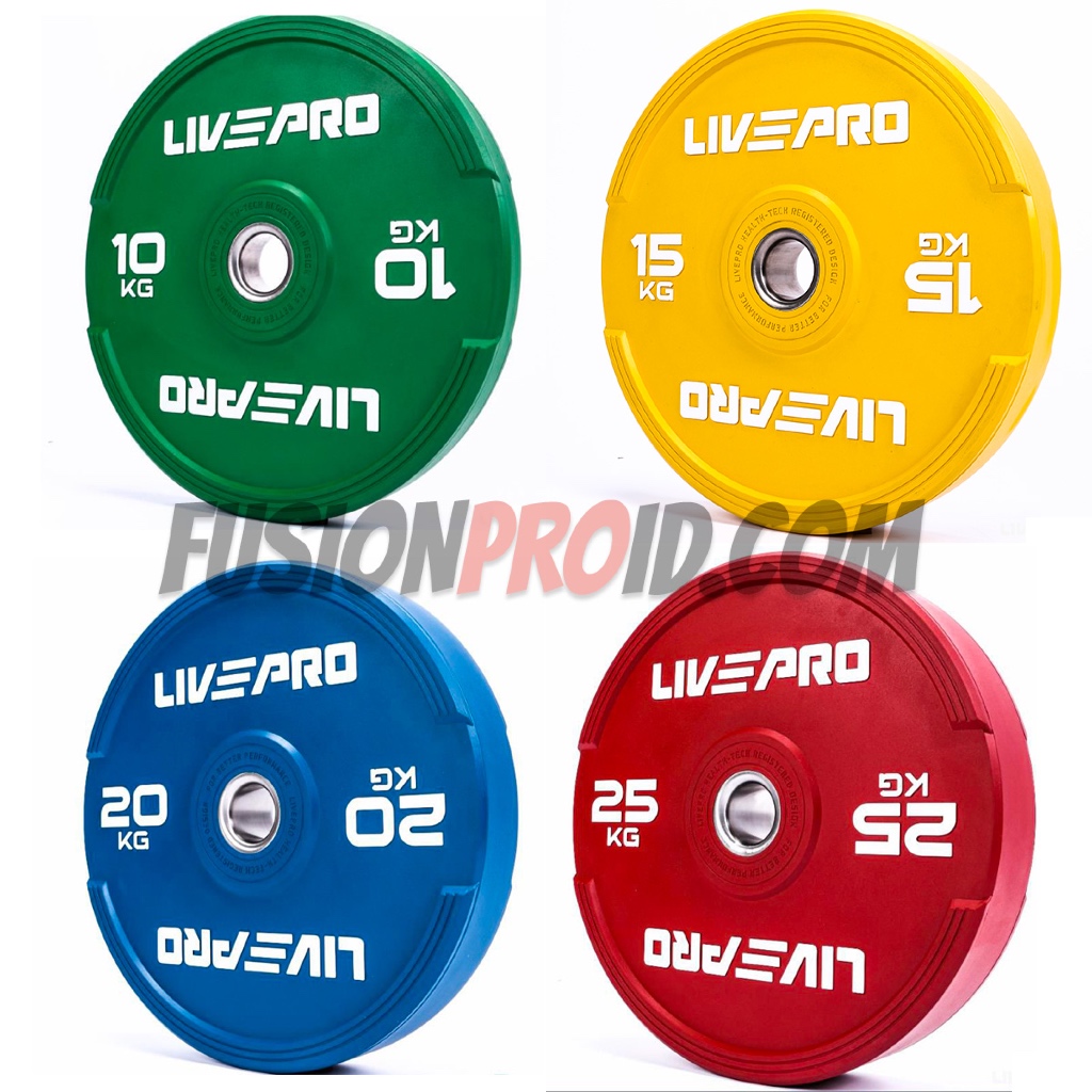 pro Lp8332 Elite Bumper Plate 10Kg X2 – Plat Beban Warna, Virgin Rubber, Urethane Coated, Standar Olimpiade