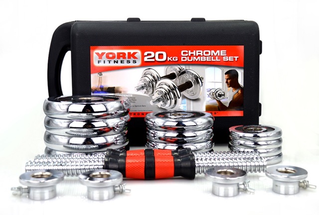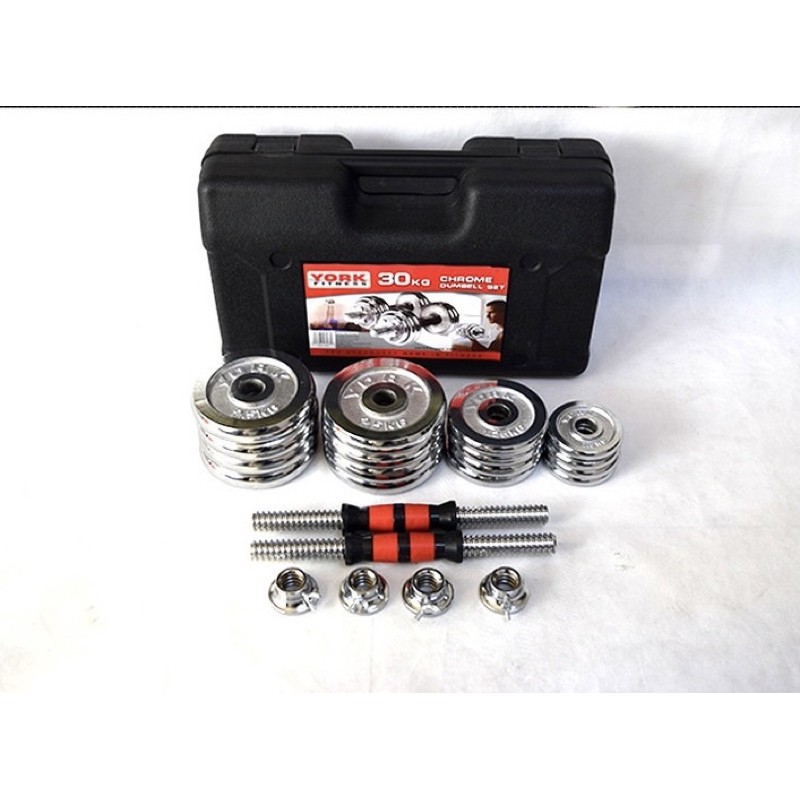 Bsm.Medan Khusus Dumbell / Barbel Set Chrome 20Kg / 30Kg Merek York + Box