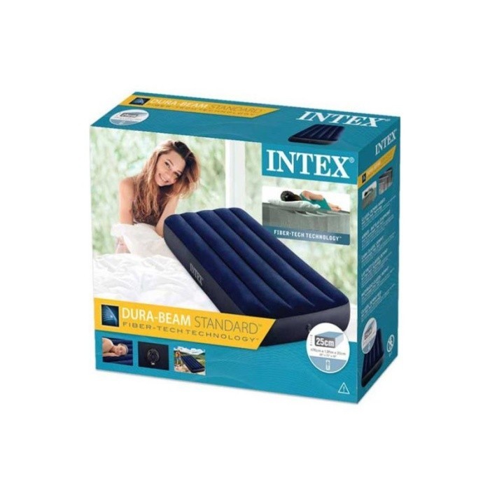 Paket Pompa Listrik Oslo + Kasur Angin Intex Single Bed Twin Matras 99 X 191Cm Durabeam Blue 64757