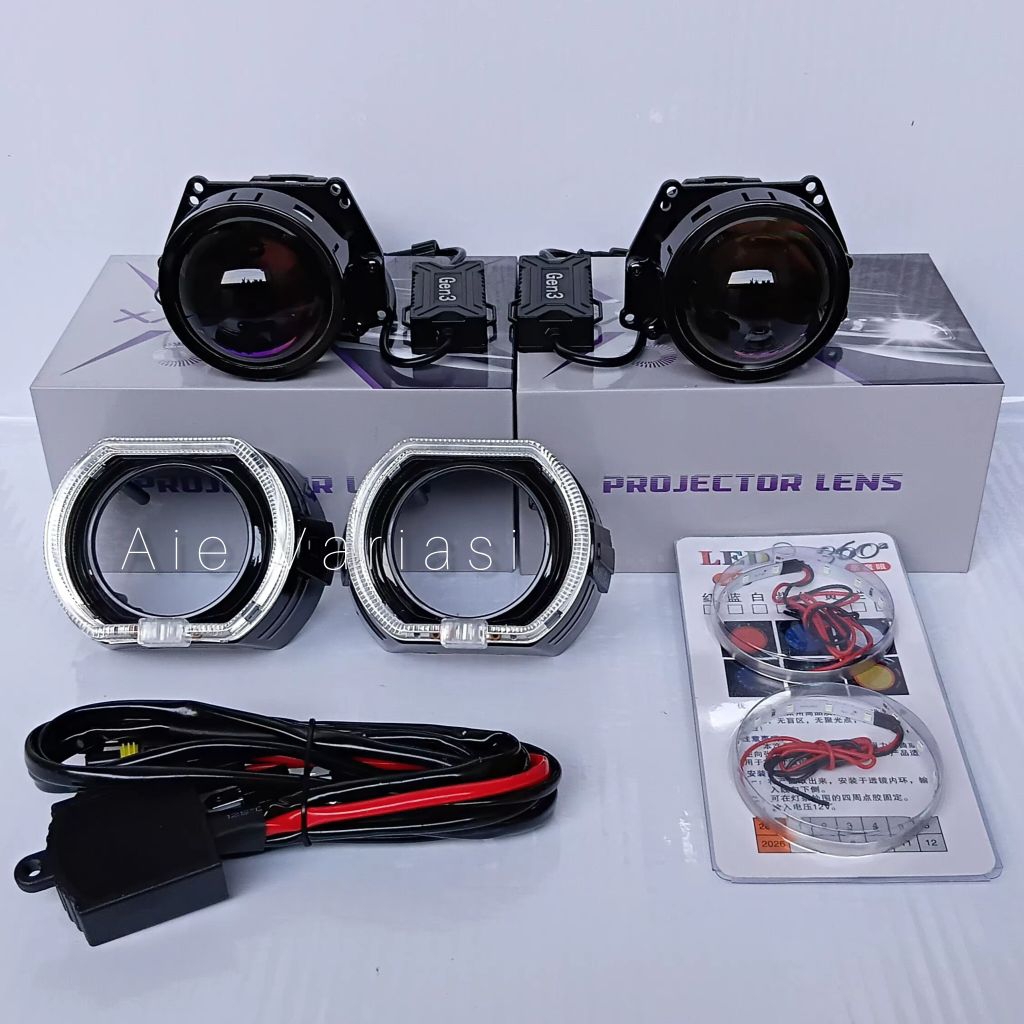 Sepasang Paket Komplit Projector Projie Biled 3 Inch Blue Lens P45 Gen 3 Vinyx