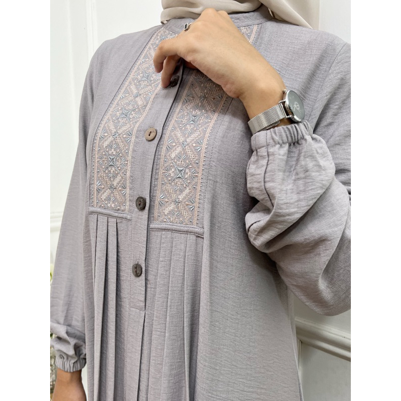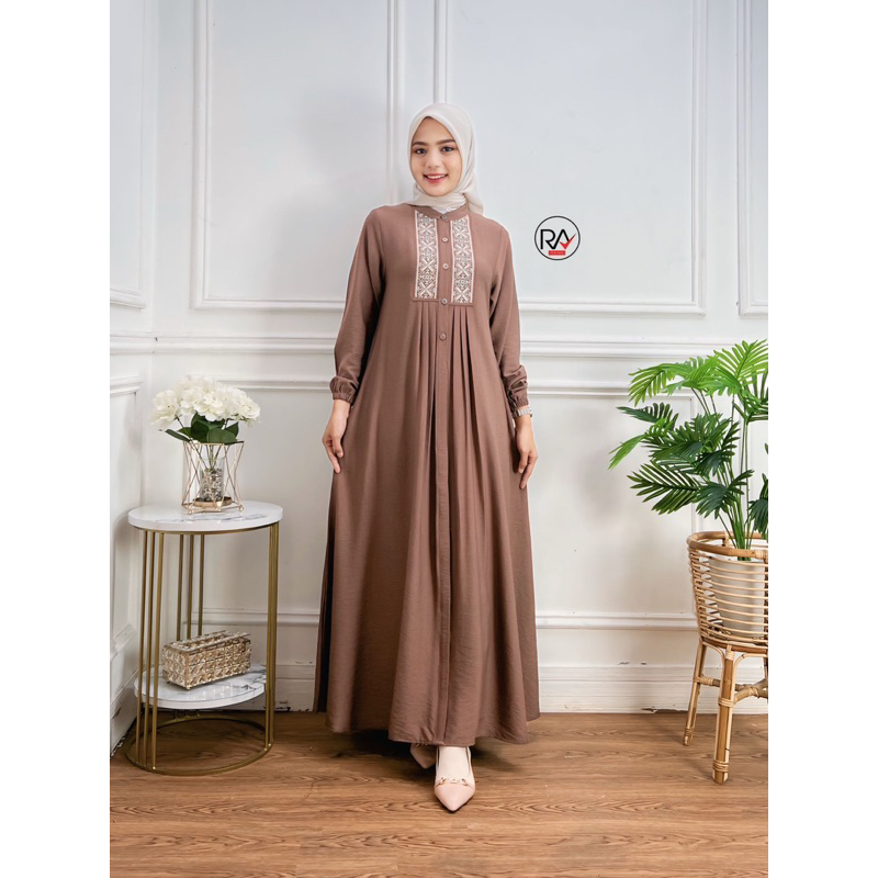 RA FASHION - ARUMI DRESS GAMIS POLOS BORDIR WANITA TERBARU LINEN CRINKLE PREMIUM