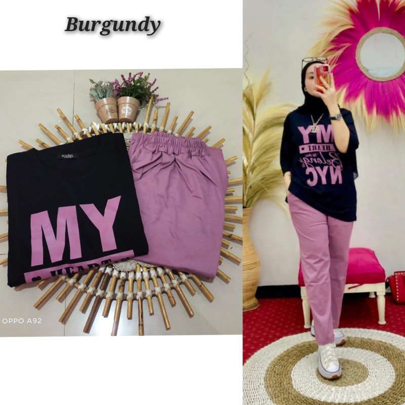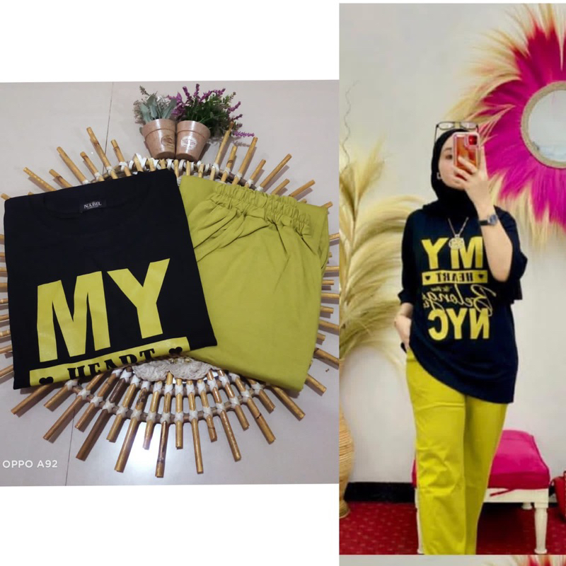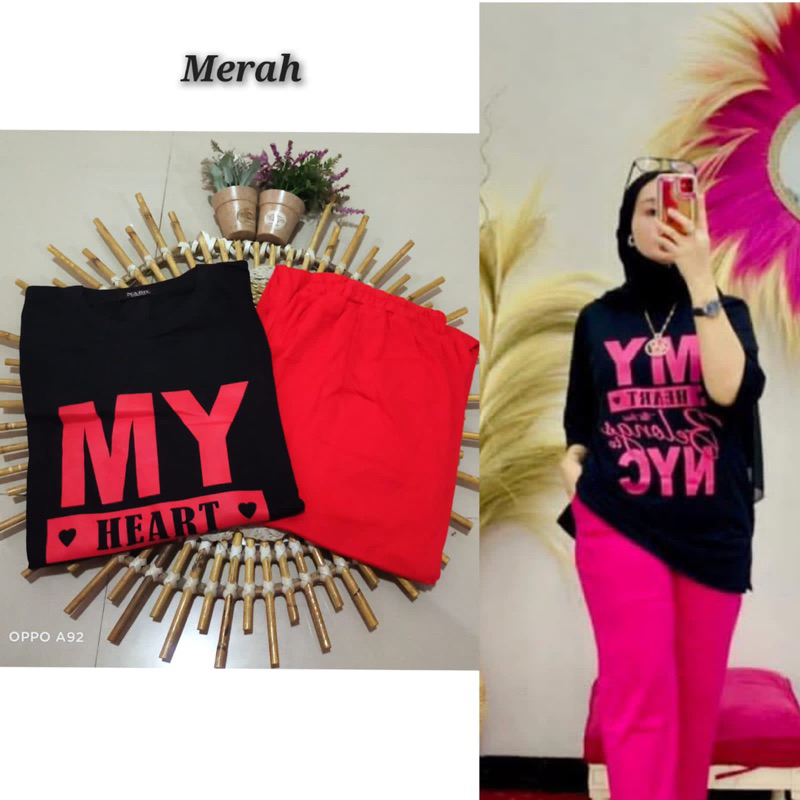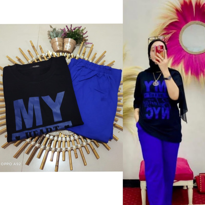 Oneset Wanita Jumbo By Nabil My Heart Kaos Combad Kekinian Trendy Setelan Celana Premium