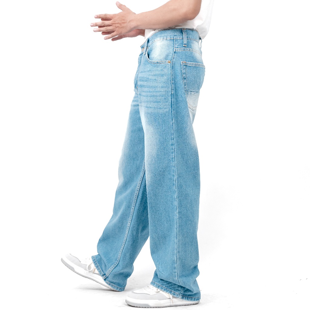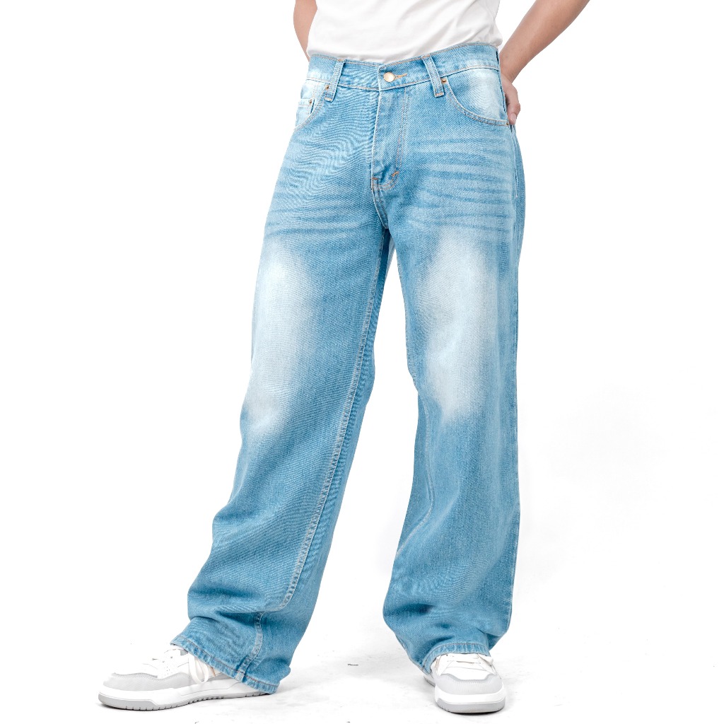 Gizmo - Celana Jeans Wide Leg Wisker Lebar Gombrong Skena Bioblitz Wisker Pria Loose Fit Jumbo Big Keren Bahan Denim