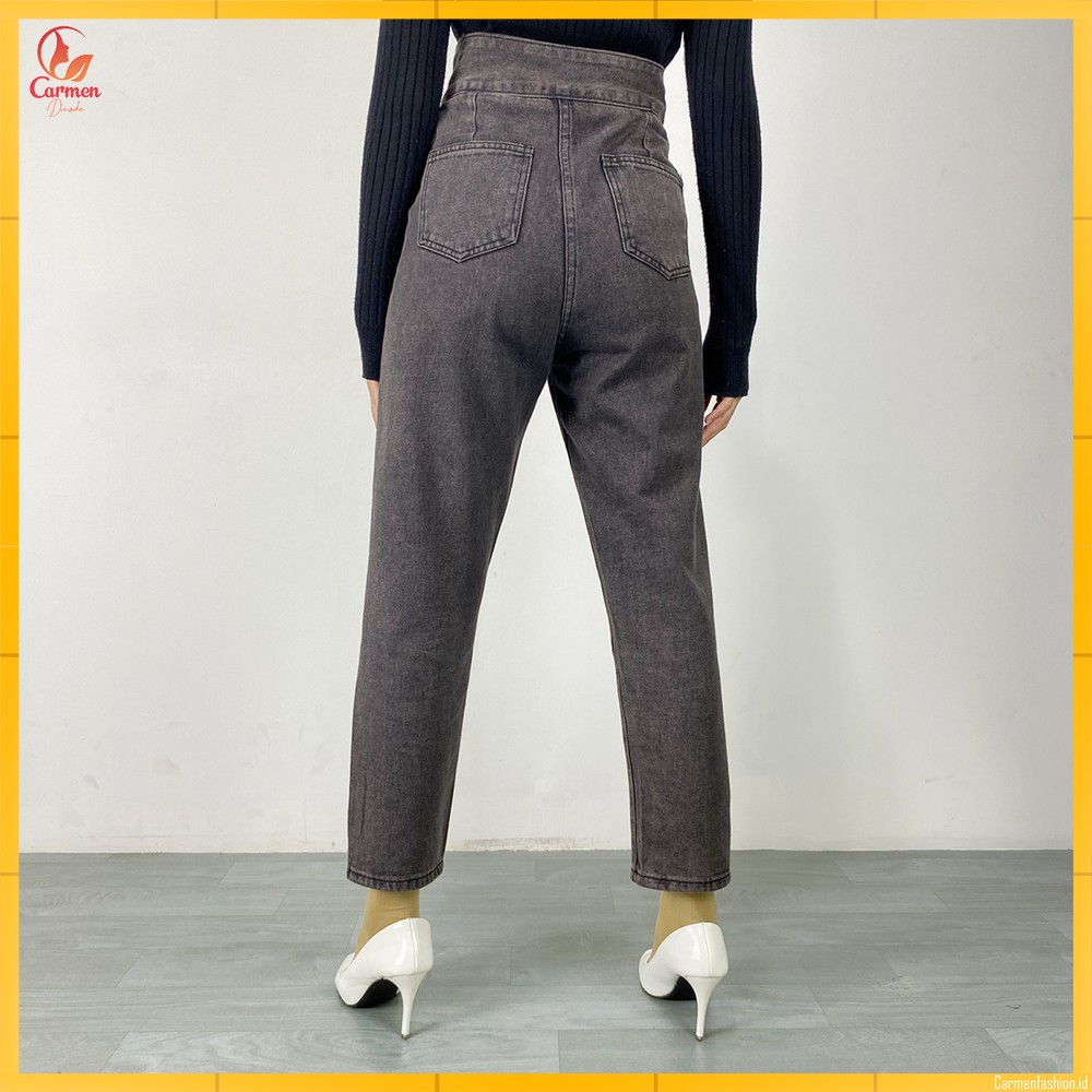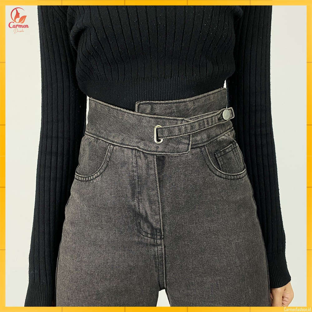 Celana Highwaist Fashion Wanita Model Kancing Samping / Jeans Denim Lurus Kasual Longgar Pinggang Tinggi Loose Jins CF P