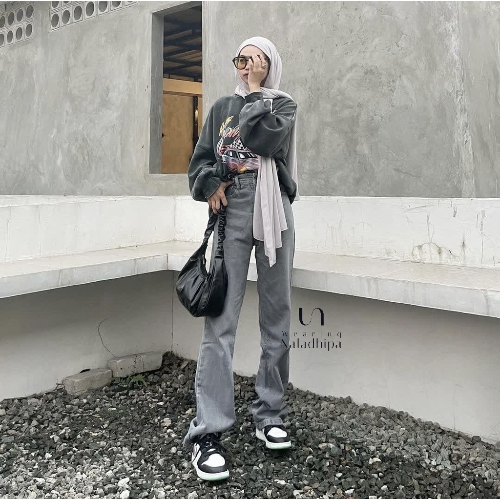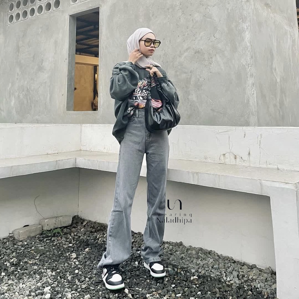 Naladhipa - Nara Pants Grey | Highwaist Stright Jeans | Denim Loose jeans | Celana Wanita | Celana Jeans Wanita | High W