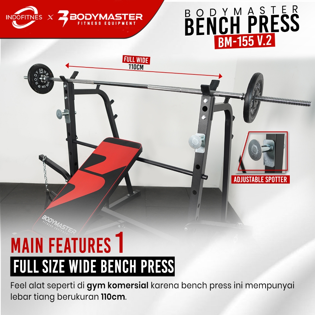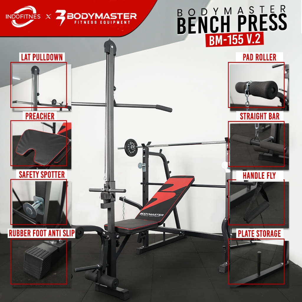 Bodymaster Paket Lengkap Bench Press Stick Dan Beban 40Kg - Bodymaster Bm-155 Benchpress Lat Pull Down Gym