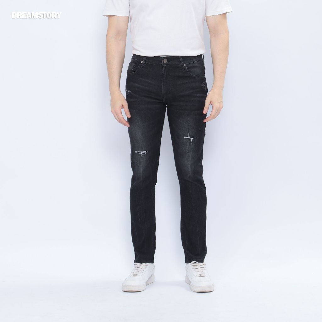 Dream Story - Celana Panjang Jeans Slimfit Skinnyfit Back To Star Black Wash Denim Stretch Celana Panjang Pria Denim Mot