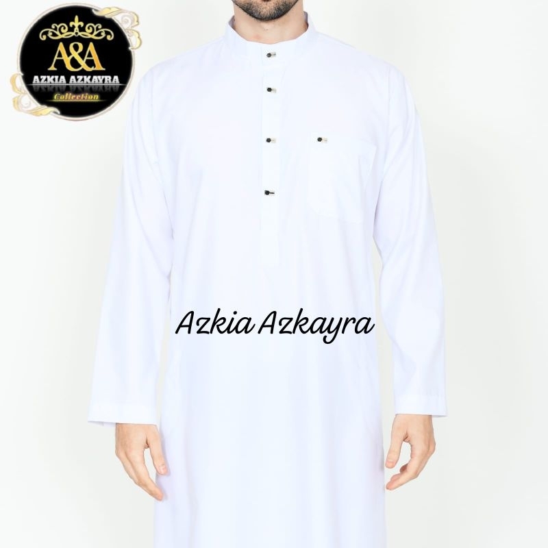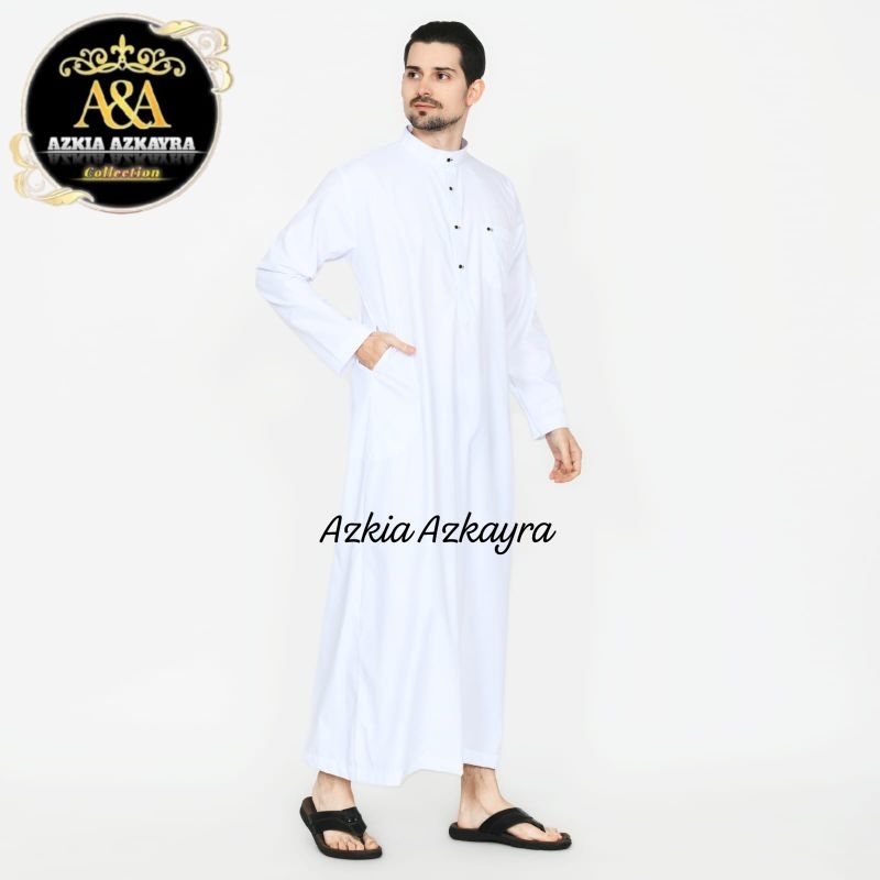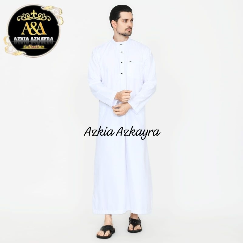 Jubah Gamis Pria Saudi Basic Thobe Jubbah Baju Muslim Polos Dewasa Lengan Panjang Putih Haji Umroh