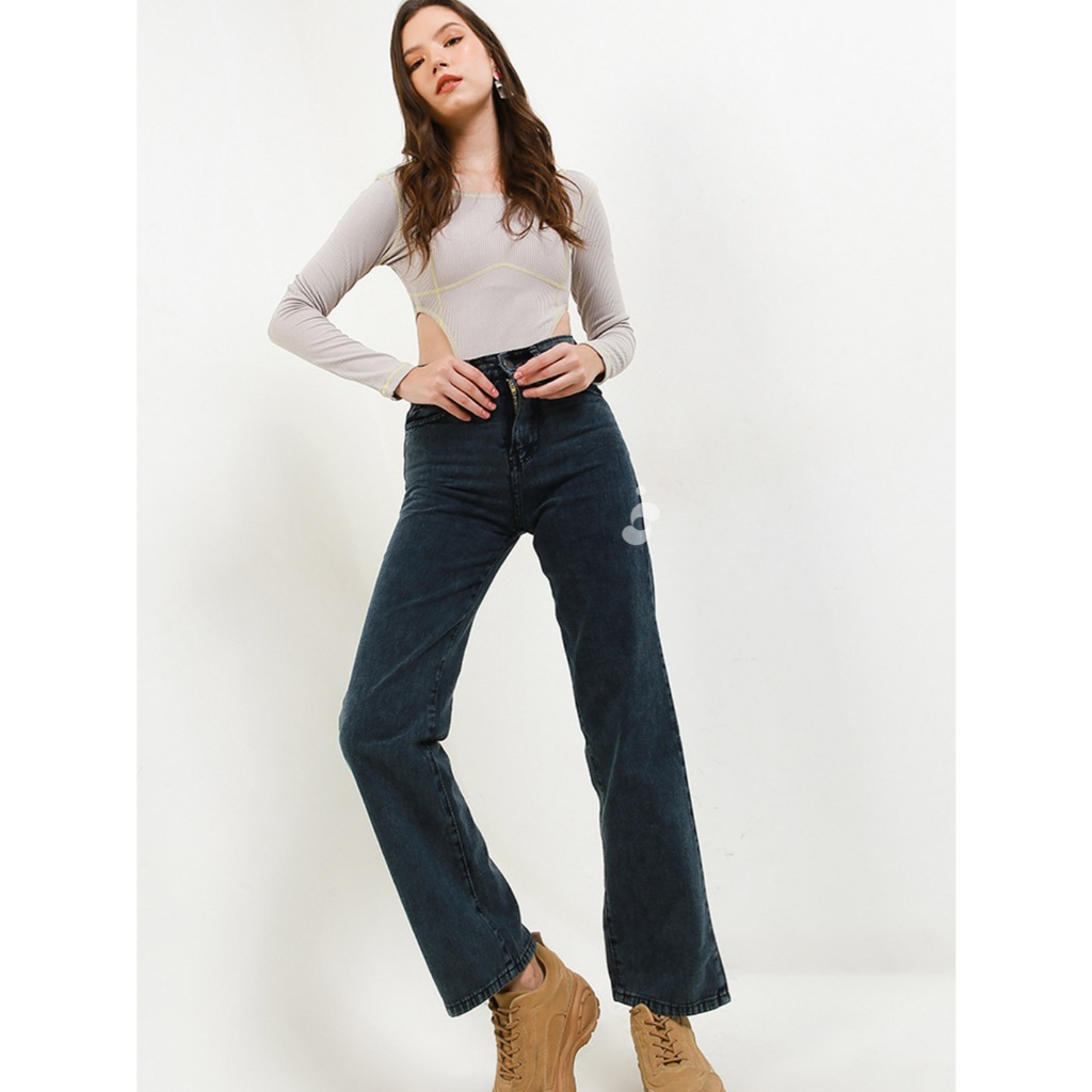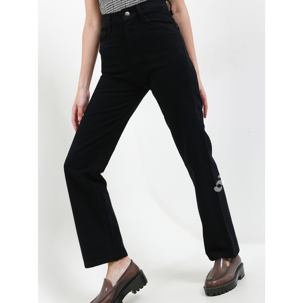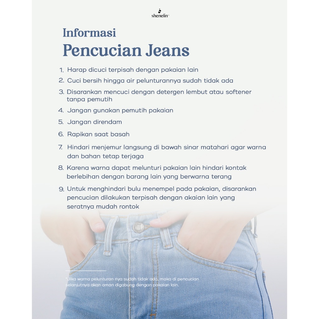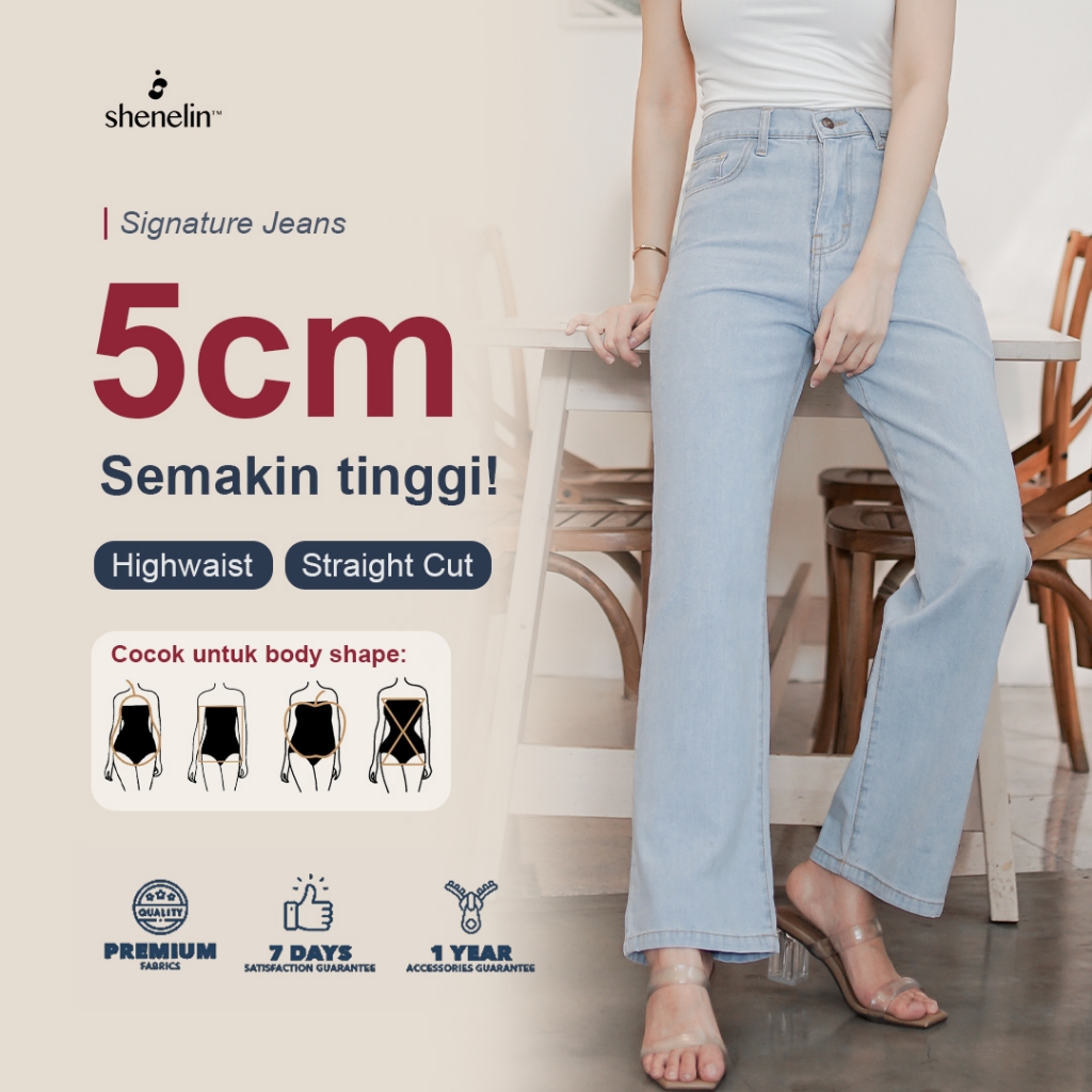 Shenelin Straight Loose Jeans Highwaist Wanita Celana Jeans Lurus Hitam Denim Biru tua Signature