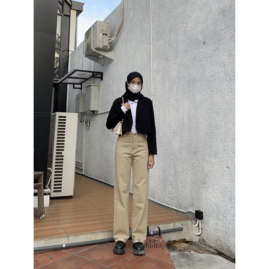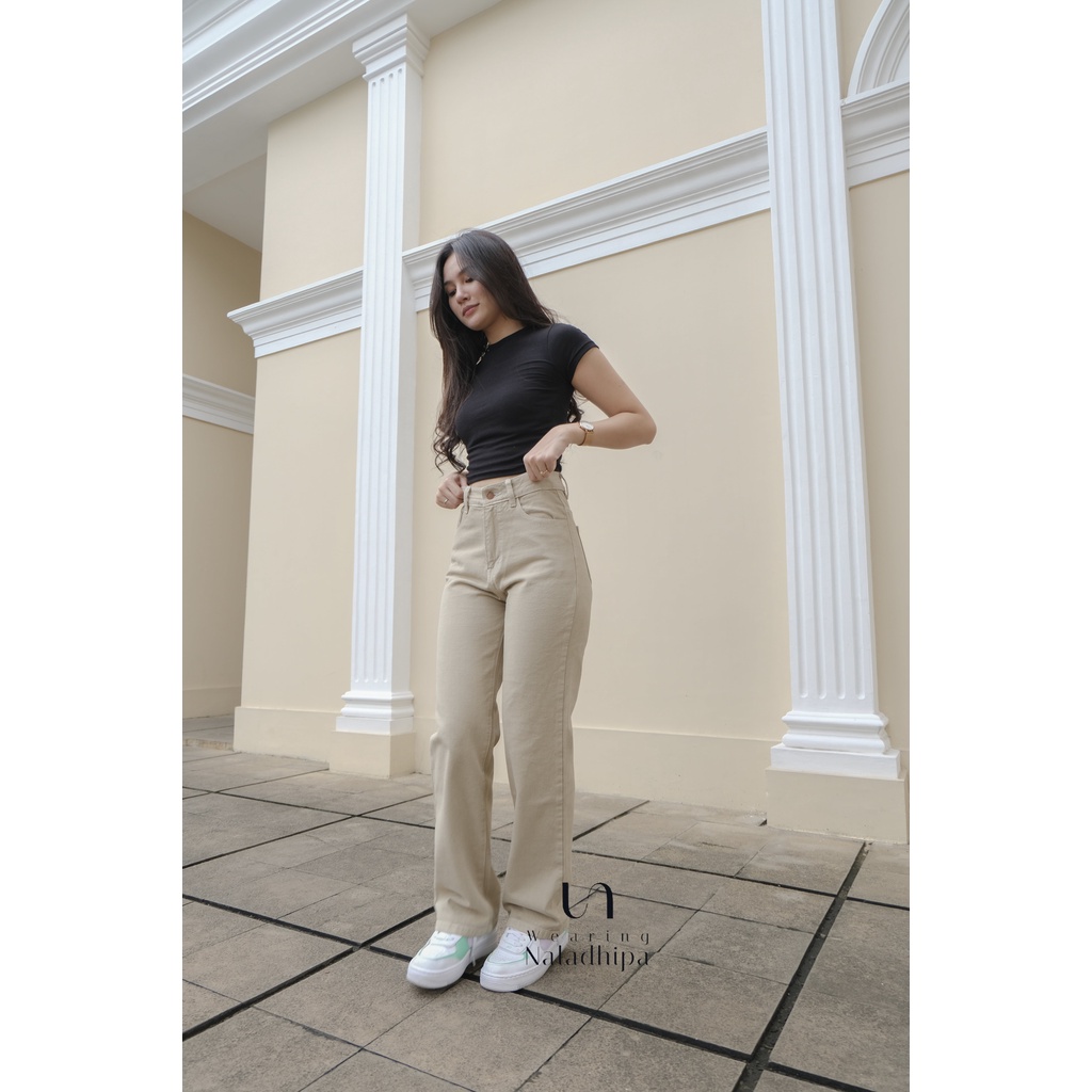 Naladhipa - Nara Pants Peanut | Highwaist Stright Jeans | Denim Loose jeans | Celana Wanita | Celana Jeans Wanita | High