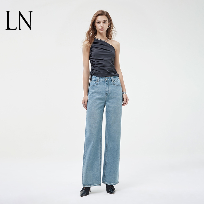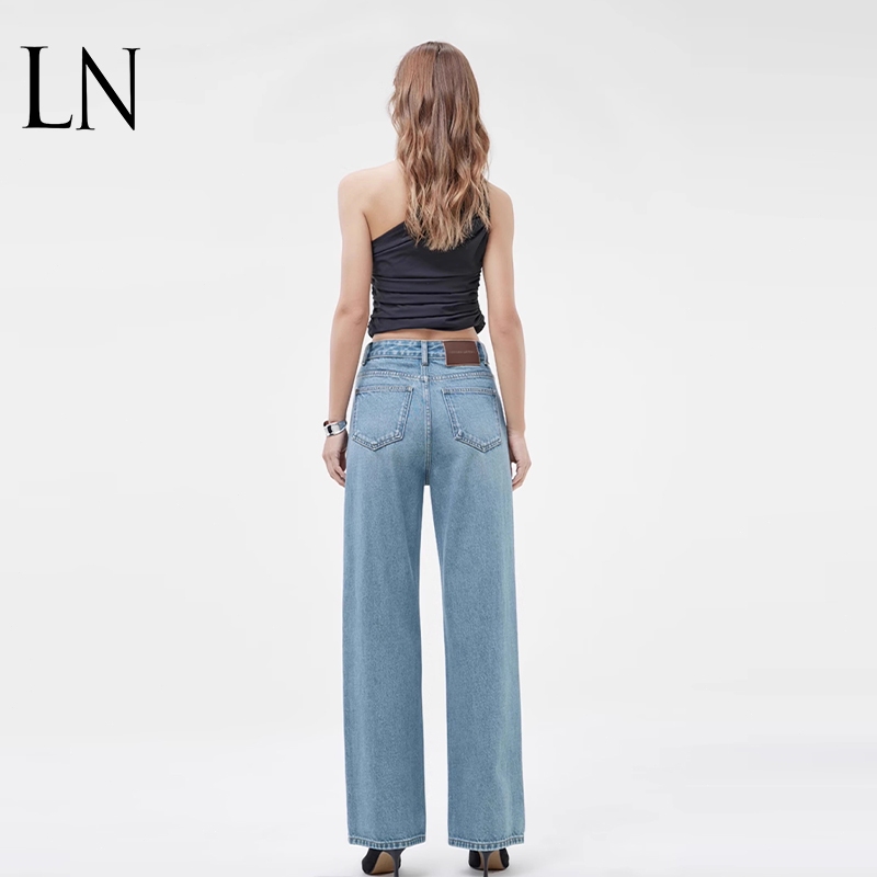 Celana jeans wanita Jeans highwaist celana wanita korean style kulot Straight blue loose pants
