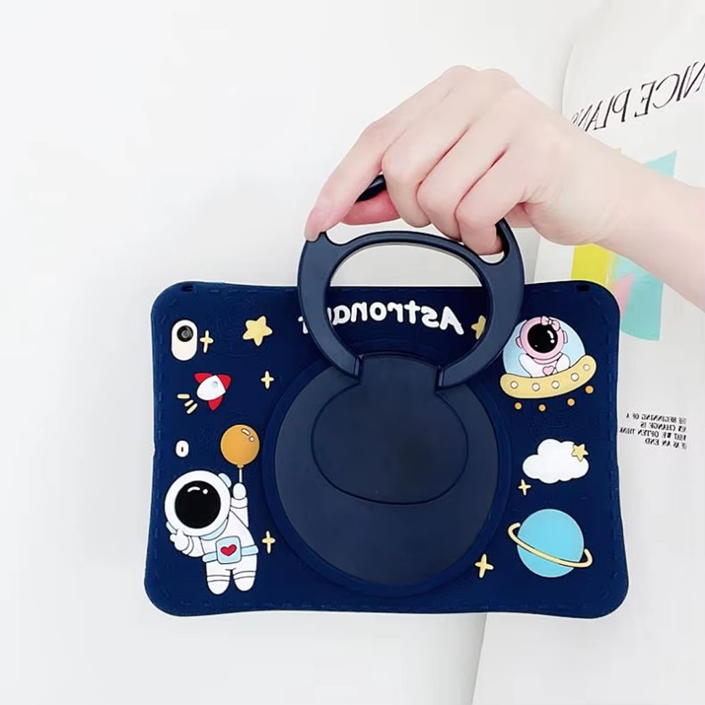 Case Samsung Tab A9 8.7 inch | A9+ 11 Inch Case Motif Silicon Astron Free Tali / Silikon Case Anak Tali Lanyard Astronot Lucu