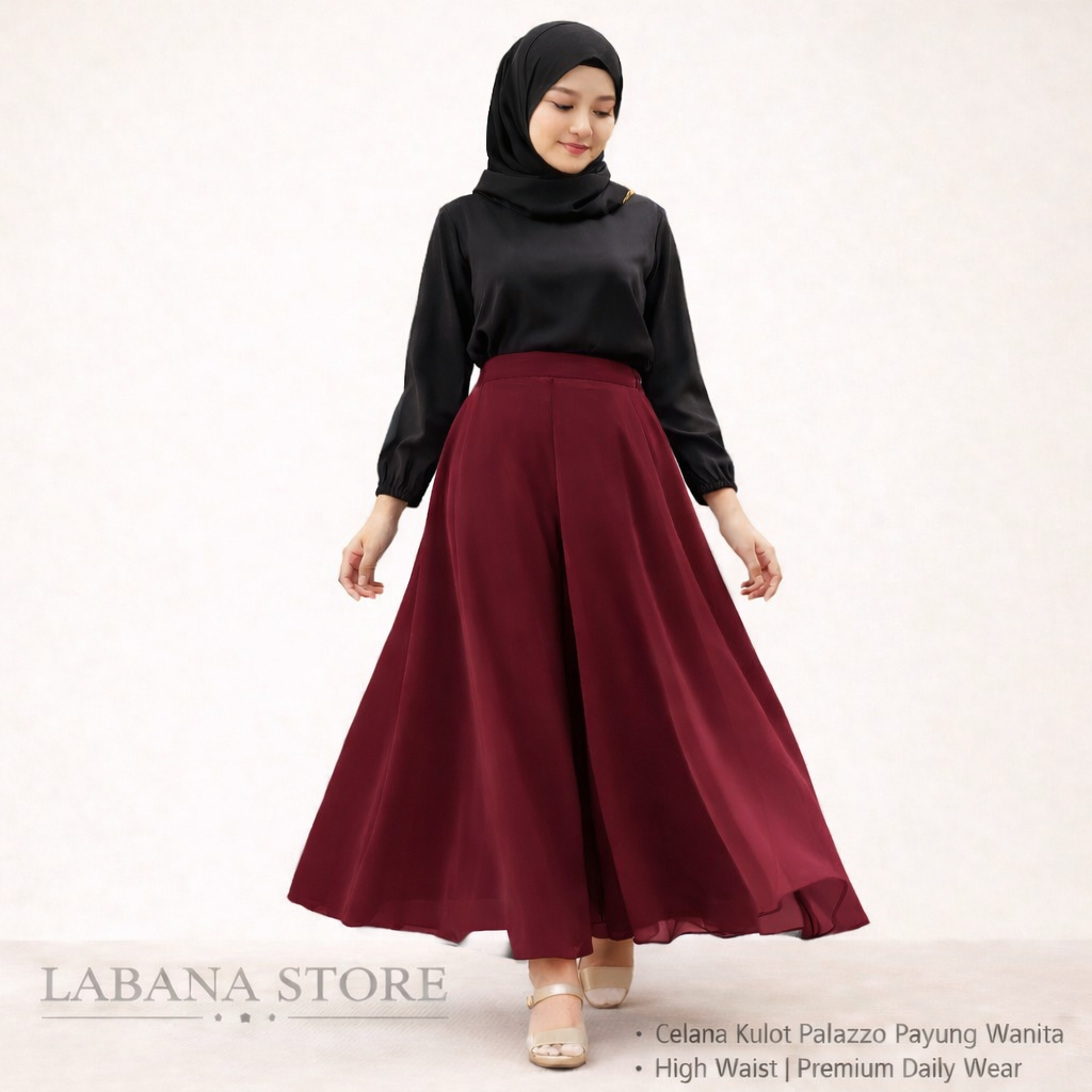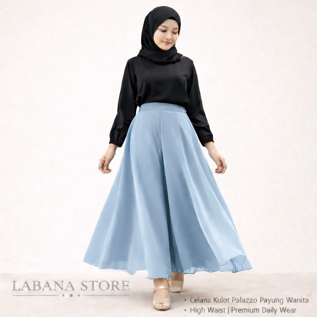 Celana Kulot Panjang Payung Lebar Wanita Muslimah Polos Palazzo Sifon Chiffon Ceruty Pants Almira