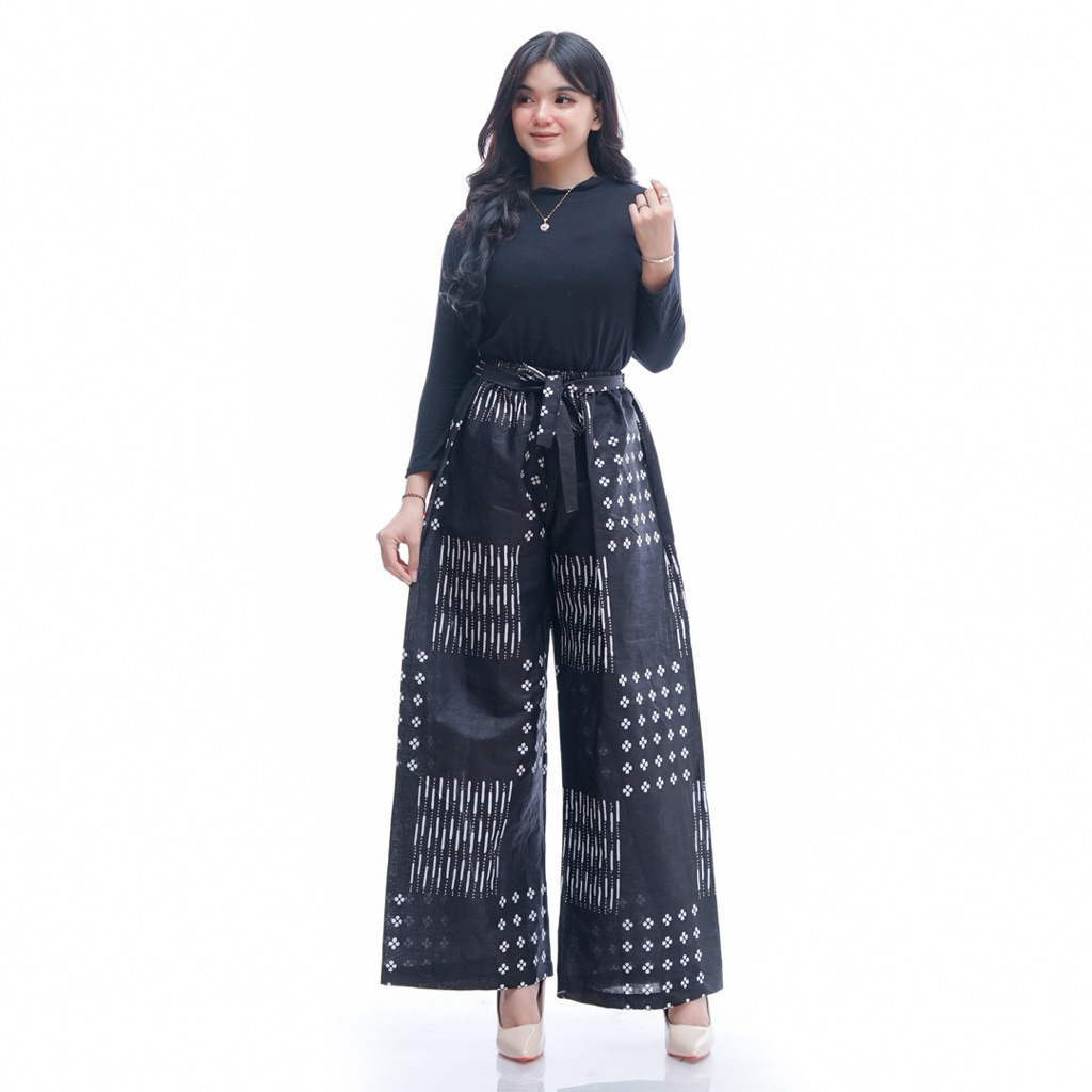 CELANA KULOT BATIK WANITA MOTIF BATANGAN JARIK LAWASAN TERBARU KULOT PALAZZO MONOKROM