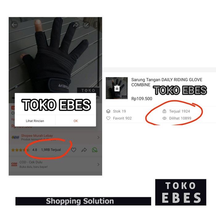 Sarung Tangan RIDING COMBINE Gloves Motor Buntung