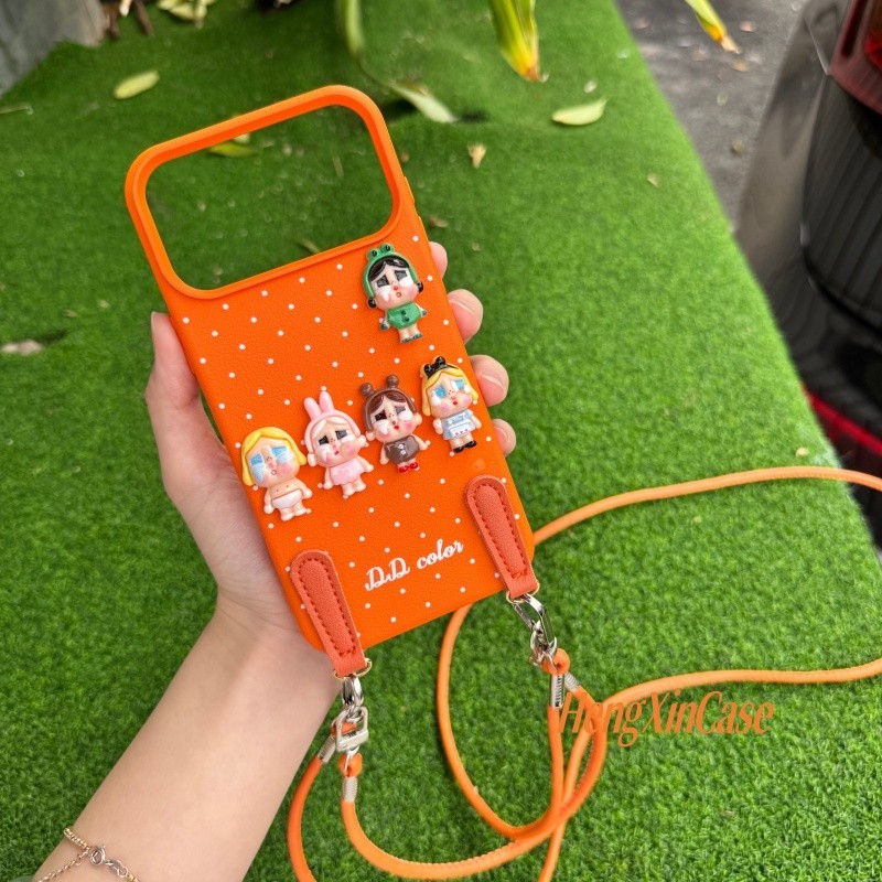 Orange 3D Crying Baby Is Suitable For Apple 17Proma Phone Case Iphone 16 15 14 13 12 11 Diagonal Cross Hanging Rope 16Pr