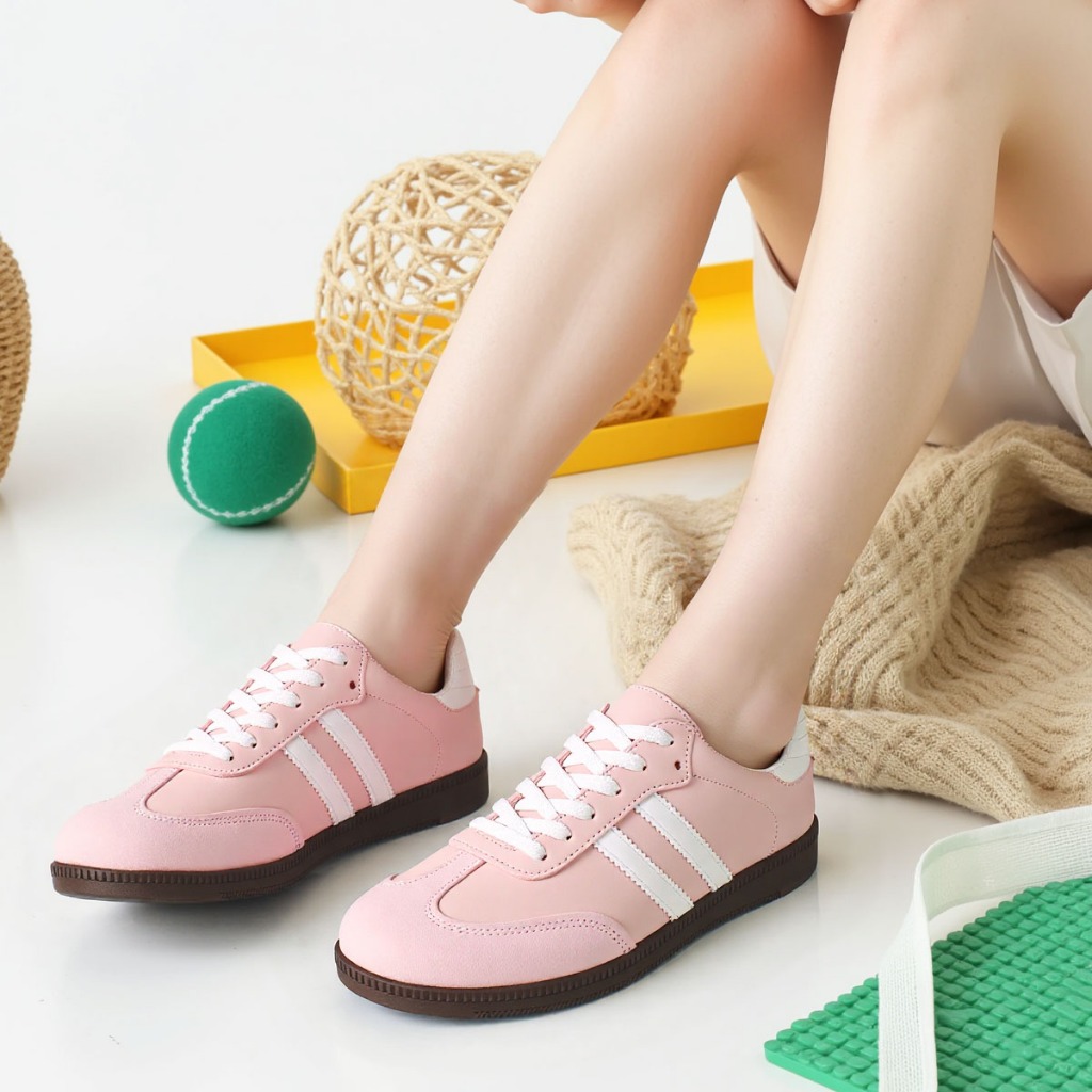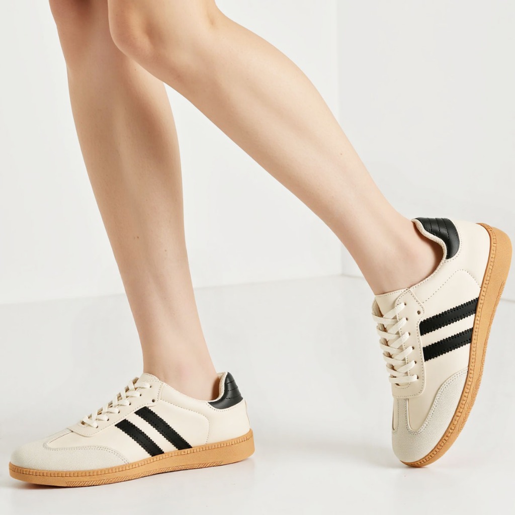 Sepatu Wanita Sam-ba Forrest Gump Bergaya Kasual Nyaman Baru Hitam/Krem ST085