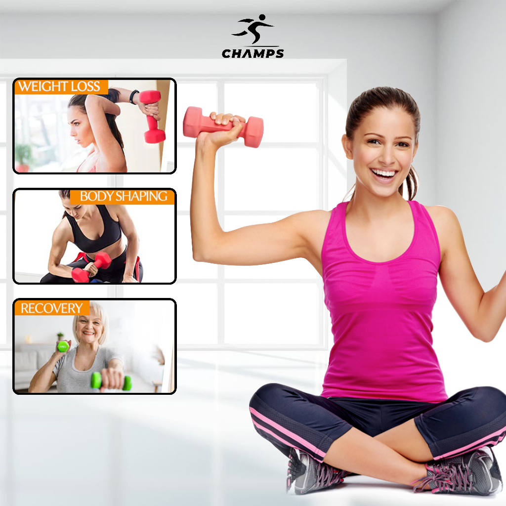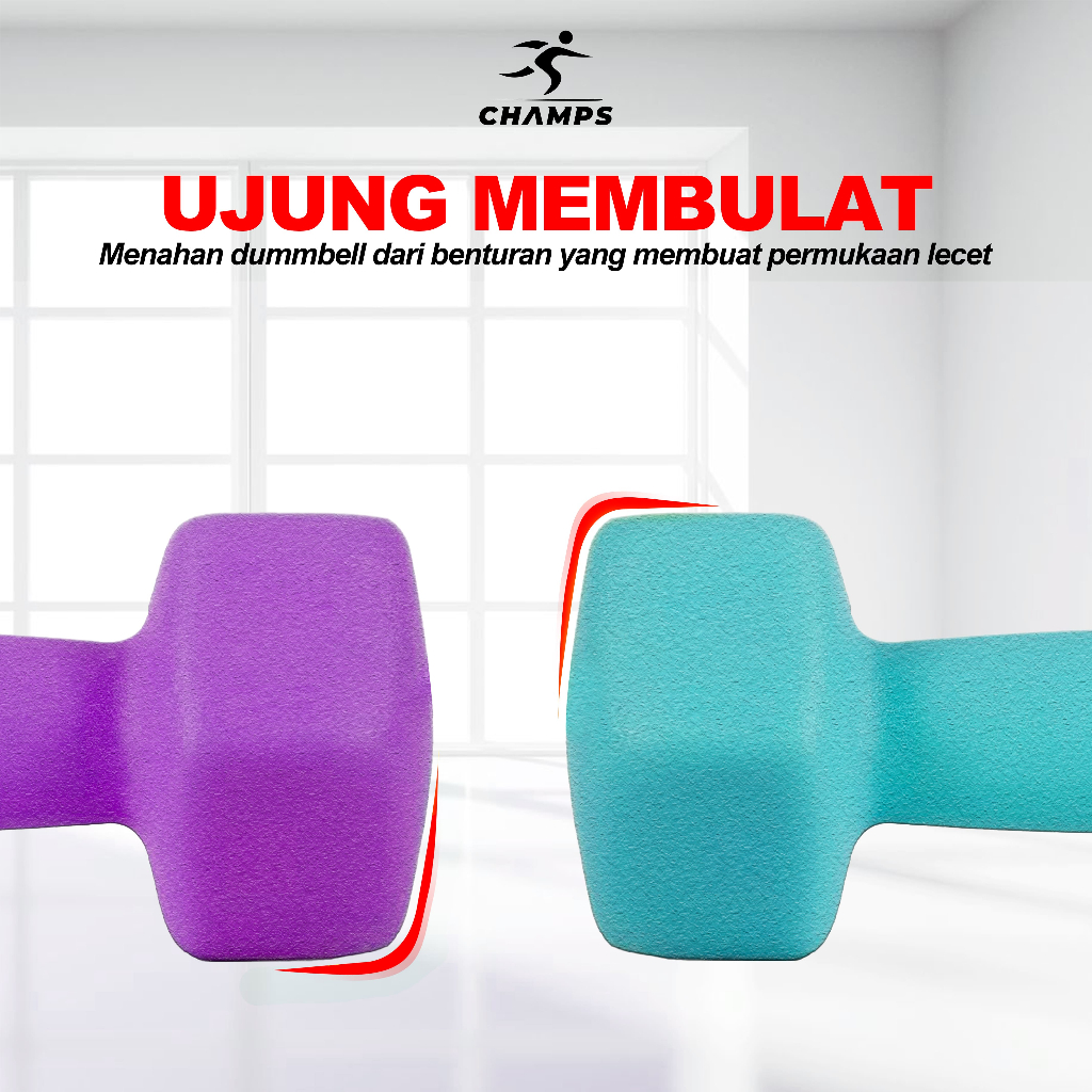 Champs Dumbbell Plastik Kulit Jeruk 1-3Kg – Dumbel Anti Slip, Alat Gym Fitness Murah Ch-C