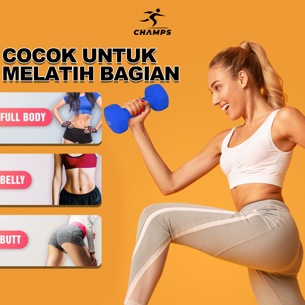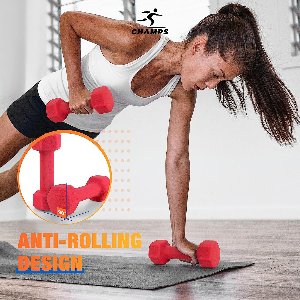Champs Dumbbell Neoprene Pvc 1-3Kg – Barbel Fitness Anti Slip, Alat Gym Rumah Murah Pemula