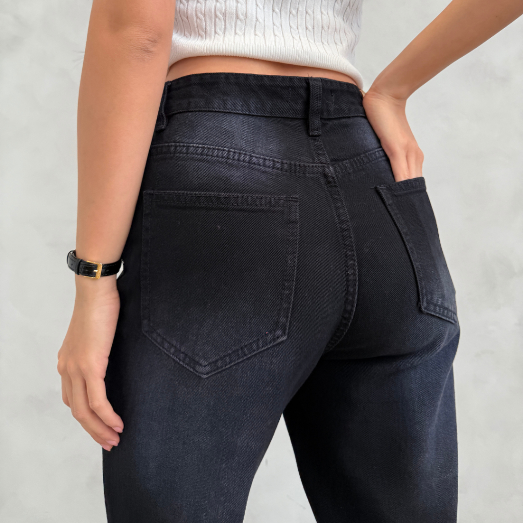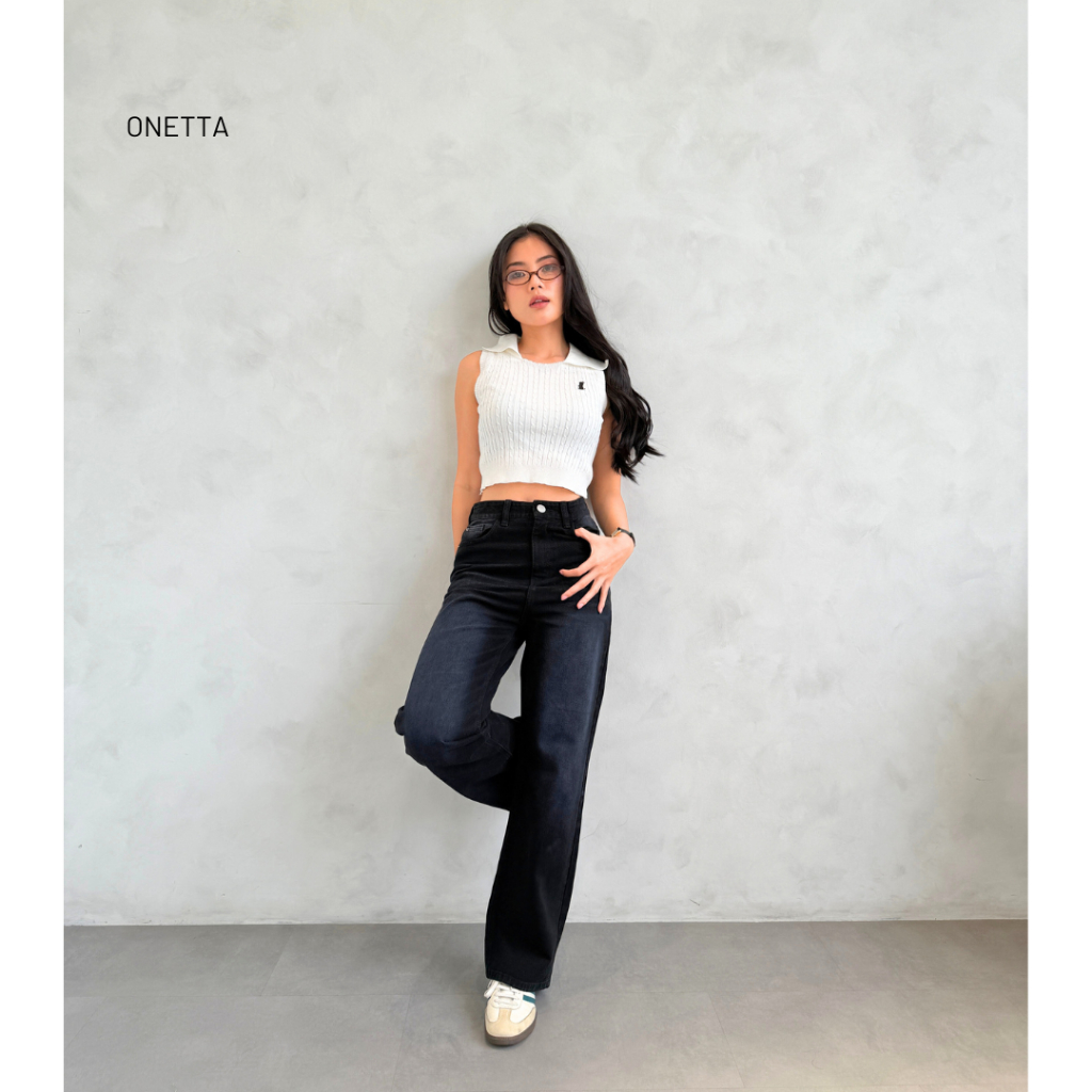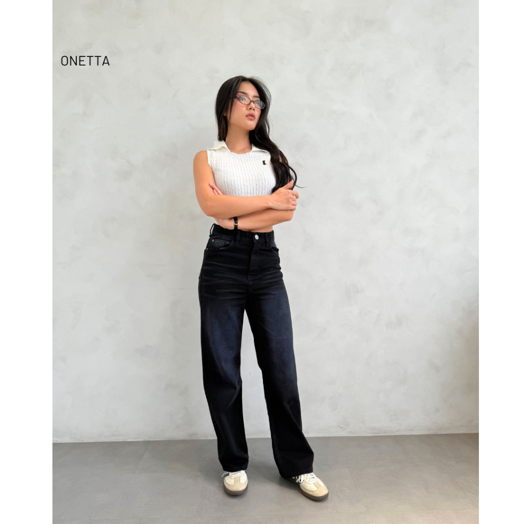 Onetta - Straight Jeans Celana Denim Wanita Black - JAYDEN Black.01