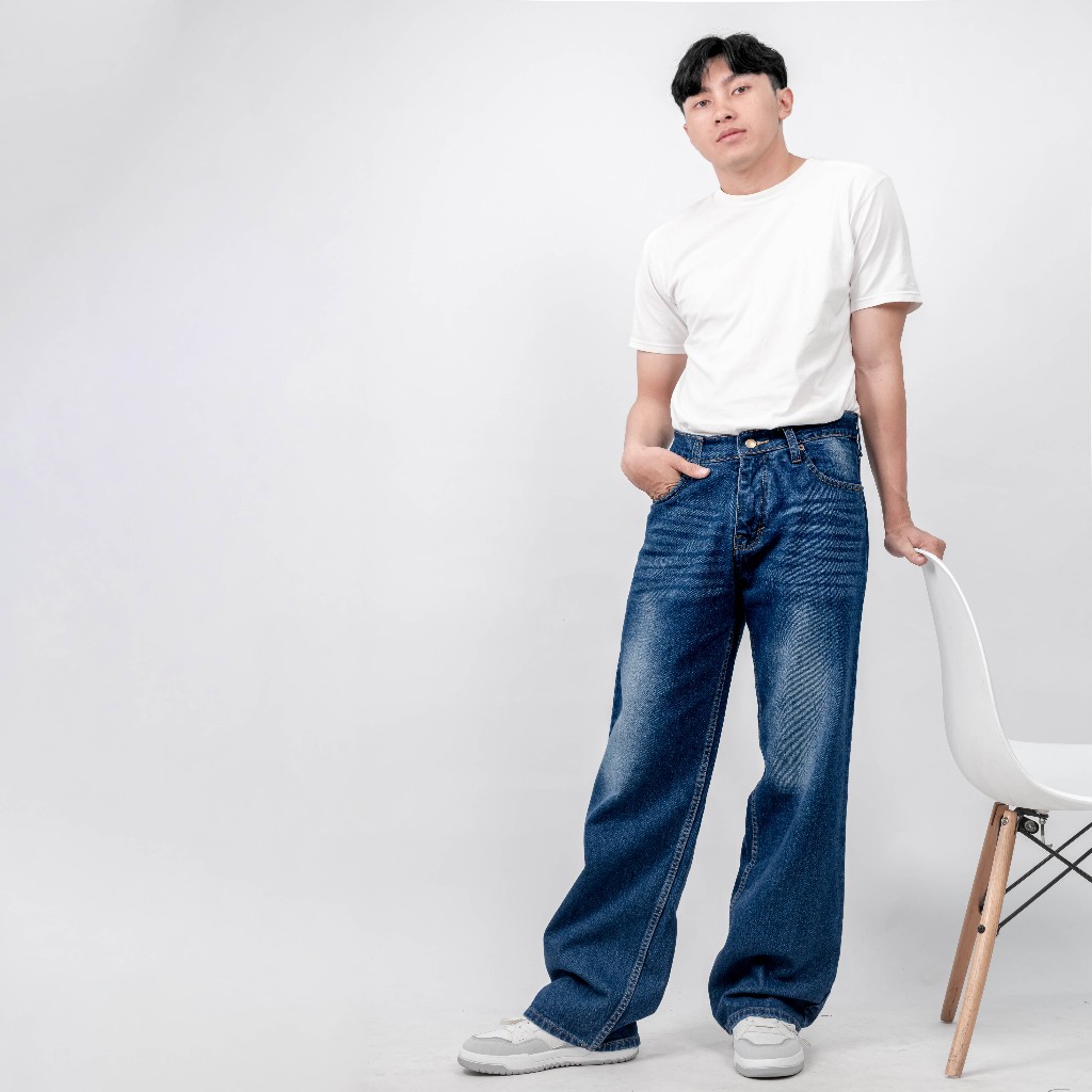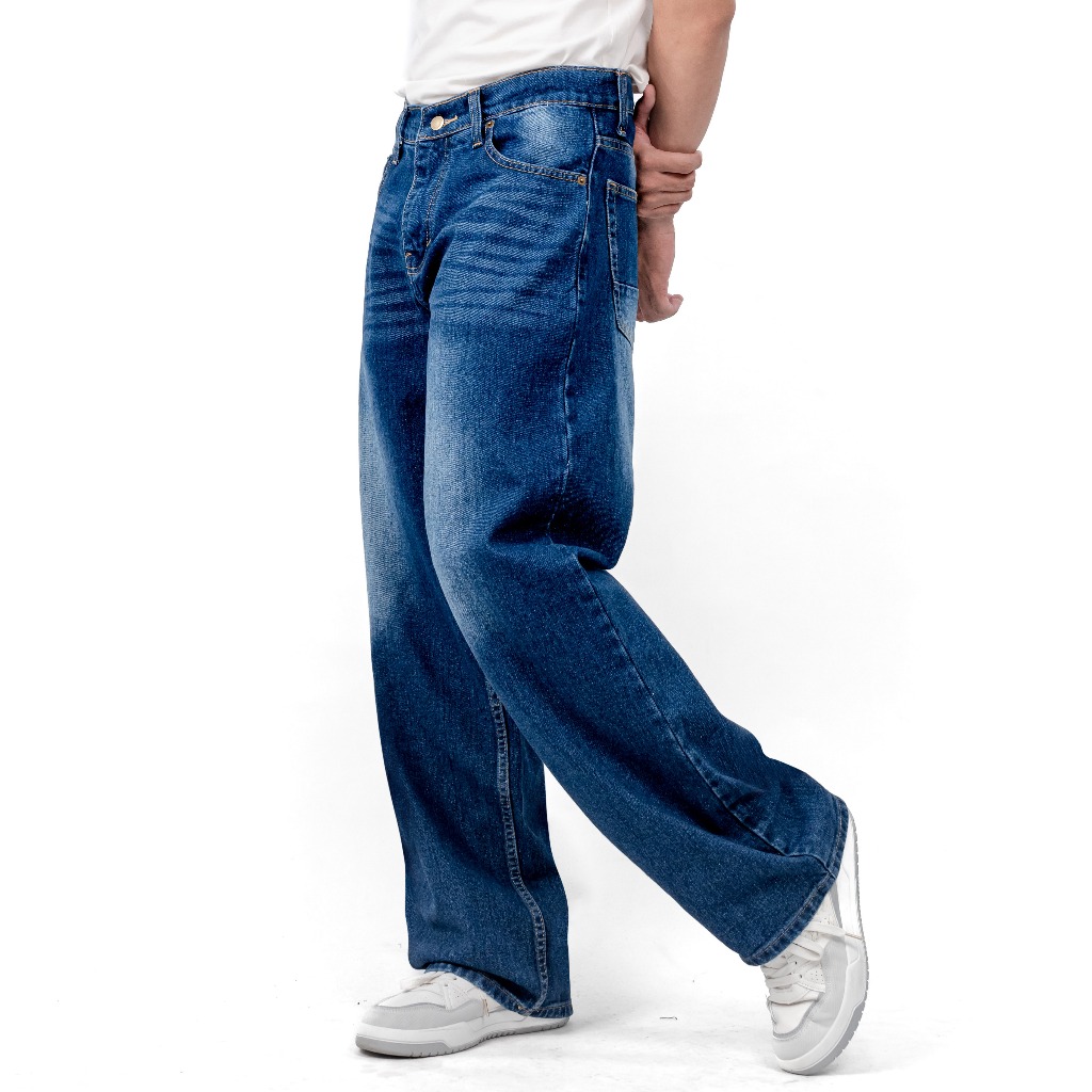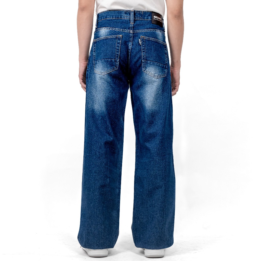 Gizmo - Celana Jeans Wide Leg Wisker Lebar Gombrong Skena Biowash Skena Pria Loose Fit Jumbo Big Keren Bahan Denim